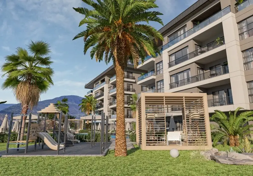 Rosy Garden offers its residents everything from entertainment to health. The facilities and privileges of the project include an outdoor swimming pool, children's pool, fitness, sauna, steam room, indoor and outdoor playgrounds, relaxation area, library, massage room, meeting room, gazebo, basketball court, generator, and outdoor parking lot. The highest quality materials were used inside the apartments, just as in the exterior architecture. While the 24/7 security service protects you, you will just enjoy life.