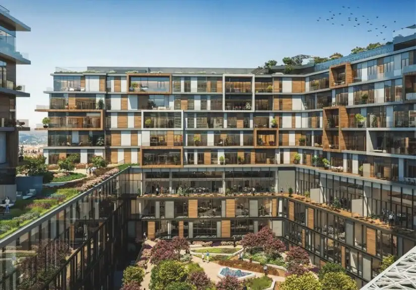 Project Project is built on 18 acres of land at the most central point of Bomonti. The project is a mixed project consisting of 599 residences, 60 offices and 18 commercial units. There are 1 bedroom + 1 living room to 4.5 bedrooms + 1 living room apartment options in the project.