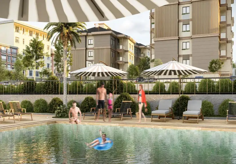 The project, located in the northern part of the Bahçeşehir district, is just 900 meters from the new Istanbul Canal and only one minute from the new Kuzey Marmara expressway and the third Gölet Park situated directly behind the project. It is also 1,400 meters from the first suspension bridge over the Istanbul Canal, 15 minutes from Akbatı Mall, and 15 minutes from Cerrahpaşa University, with Istanbul Airport only 30 minutes away. The available apartment types include 2-bed units ranging from 101 m² to 118.5 m², 3-bed units from 145.5 m² to 160 m², a 3-bed duplex at 168 m², and a 4-bed duplex at 220 m².