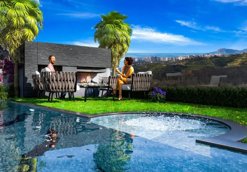 The property is 2300 m from the sea. Project with unique views of Alanya sea and nature, the modern architecture of the smart home system consists of ultra-luxury villas built on 15 360 m to 460 m² landmark land, capable of selling the electricity it produces its own electricity, and capable of buying Turkish citizenship.