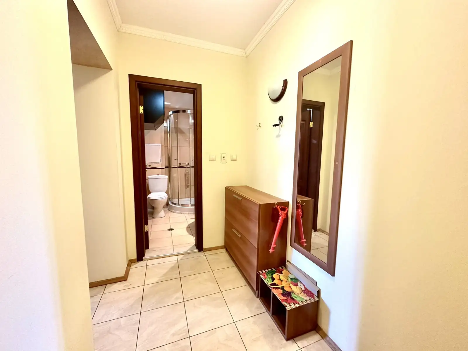 📐 Property Highlights• Floor: 2nd• Total area: 90.72 sq.m.• Layout: Entrance hall, bright living room with kitchen and dining area, 2 bathrooms with WC, bedroom, wardrobe, and a balcony• Extras: Comes fully furnished and equipped• Bonus: Includes a basement and underground parking space