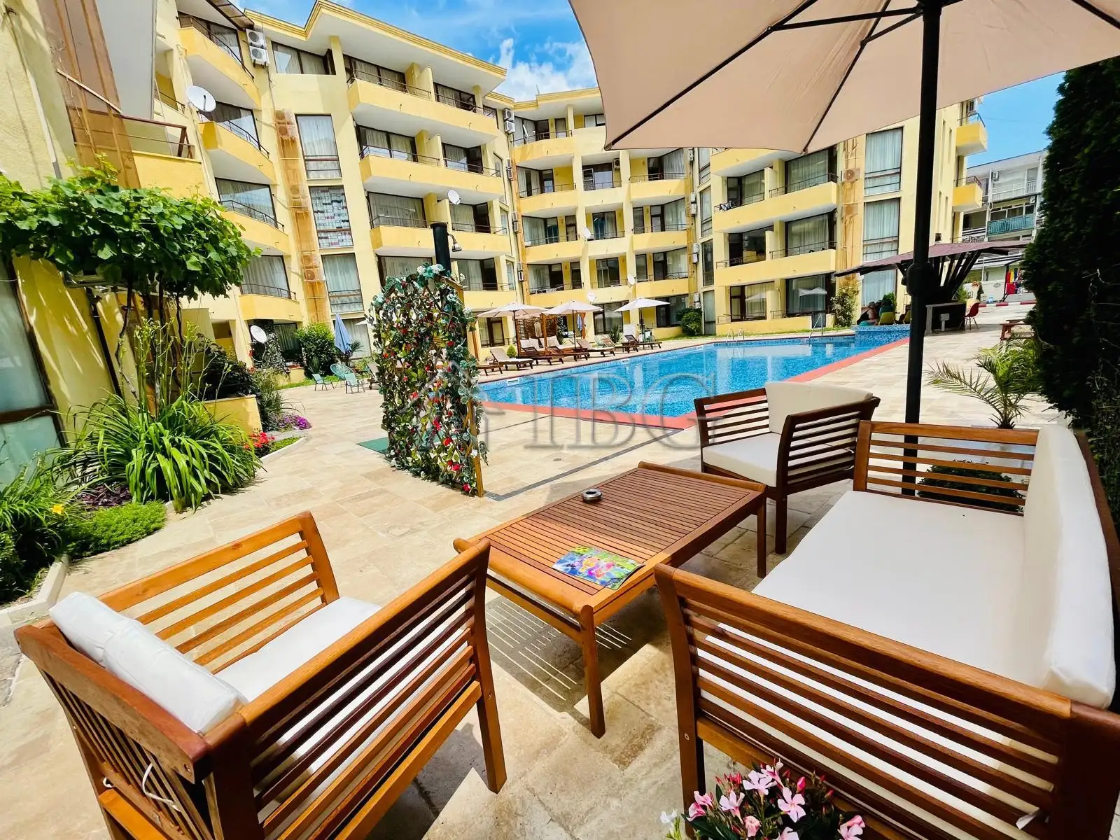 IBG Real Estates offers for sale a bright and spacious apartment located in the popular Sands complex, situated in the very center of Sunny Beach. The complex is suitable for year-round living, with many families residing permanently, while also being an excellent option for holiday use and rental investment.