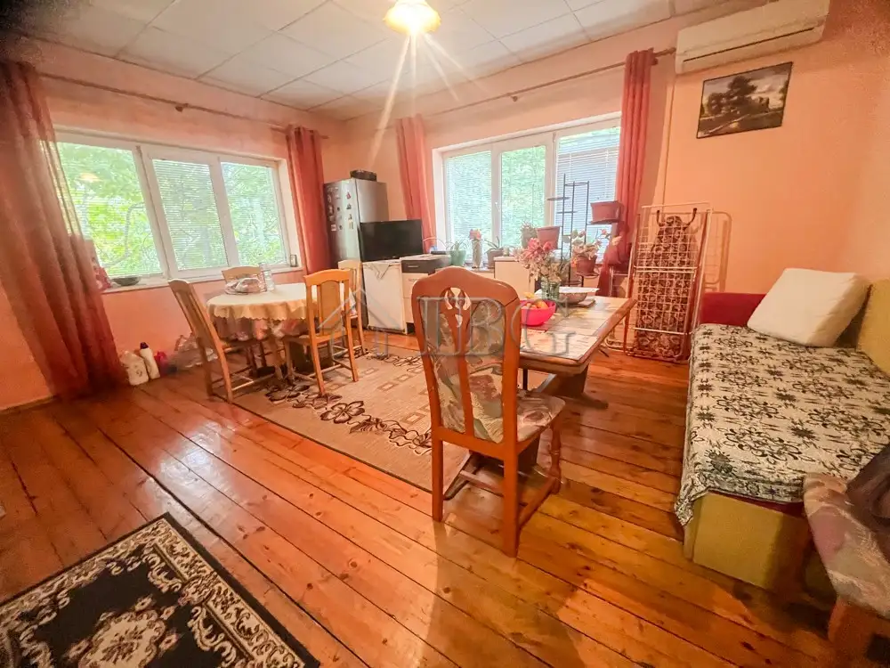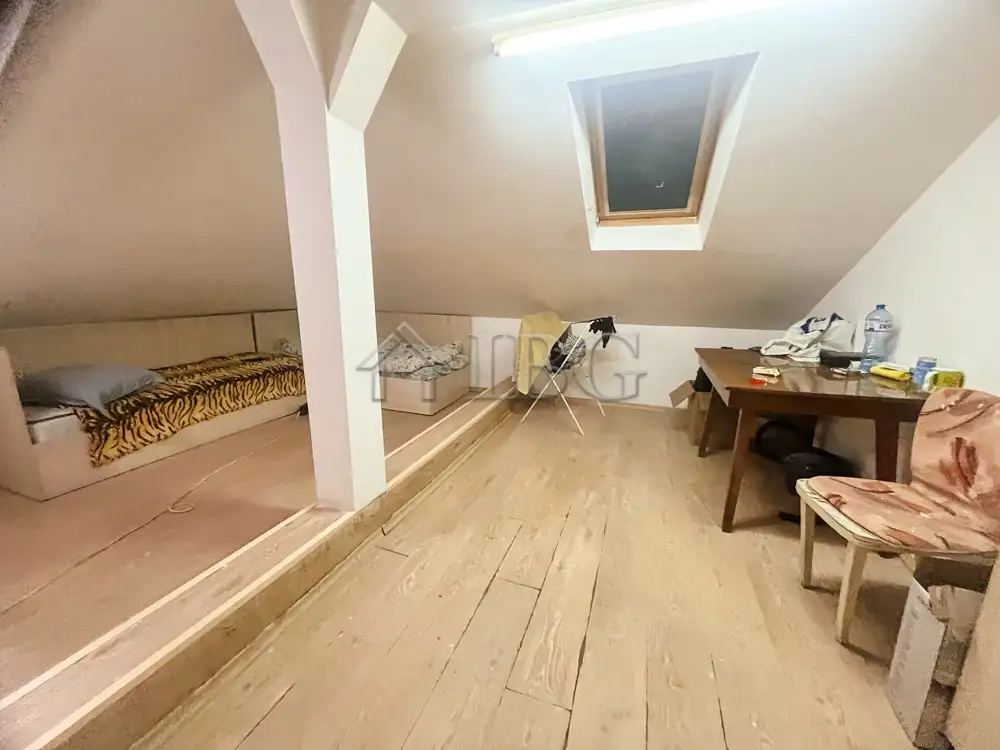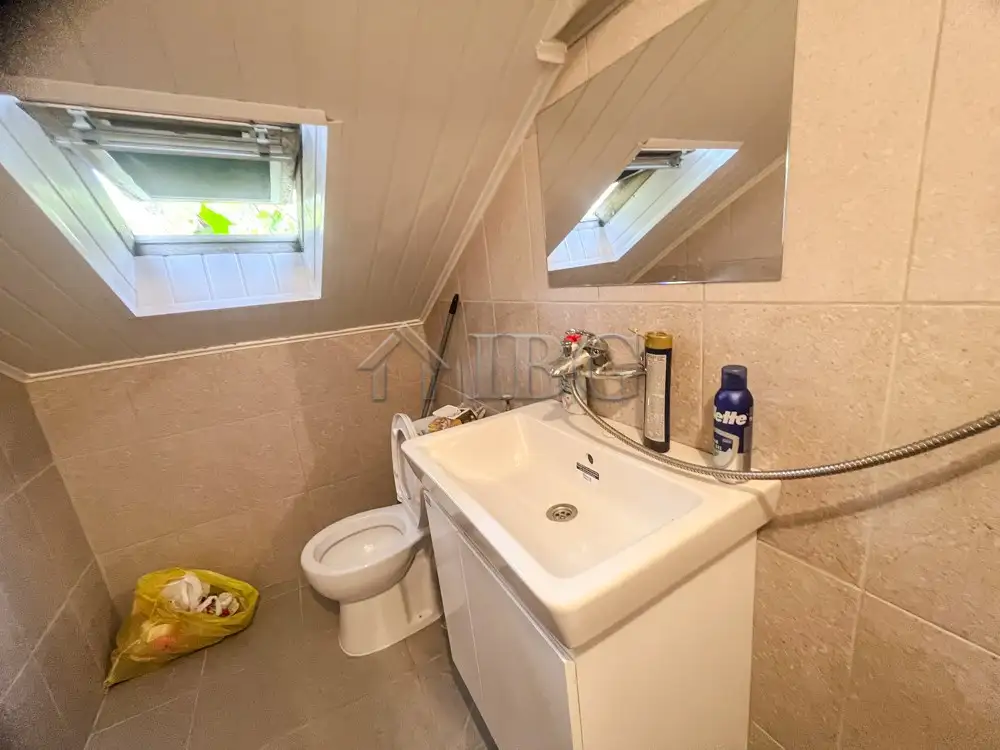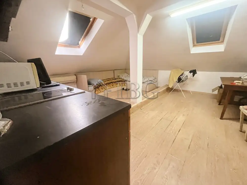 The apartment is with area of 75 sq. m. and consists of spacious kitchen with dining area, living room with bedroom, glazed terrace, bathroom with toilet and a corridor. The apartment is renovated and currently is rented out. The property offers fully renovated studio with bathroom and toilet on the upper floor, which is rented out at the moment.