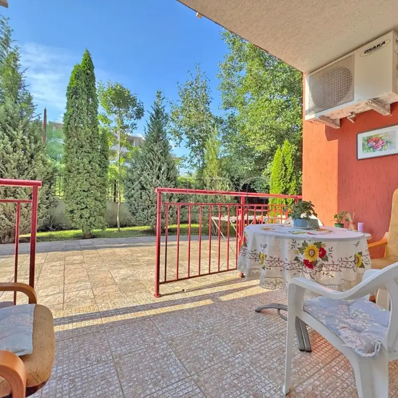 IBG Real Estates offers for sale a spacious 1-bedroom apartment located on the ground floor with a lovely veranda in the well-maintained Green Fort complex, Sunny Beach. The apartment has a total area of 73 sq.m. and is sold fully furnished and equipped, exactly as shown in the photos – ready for living, holidays, or renting out.