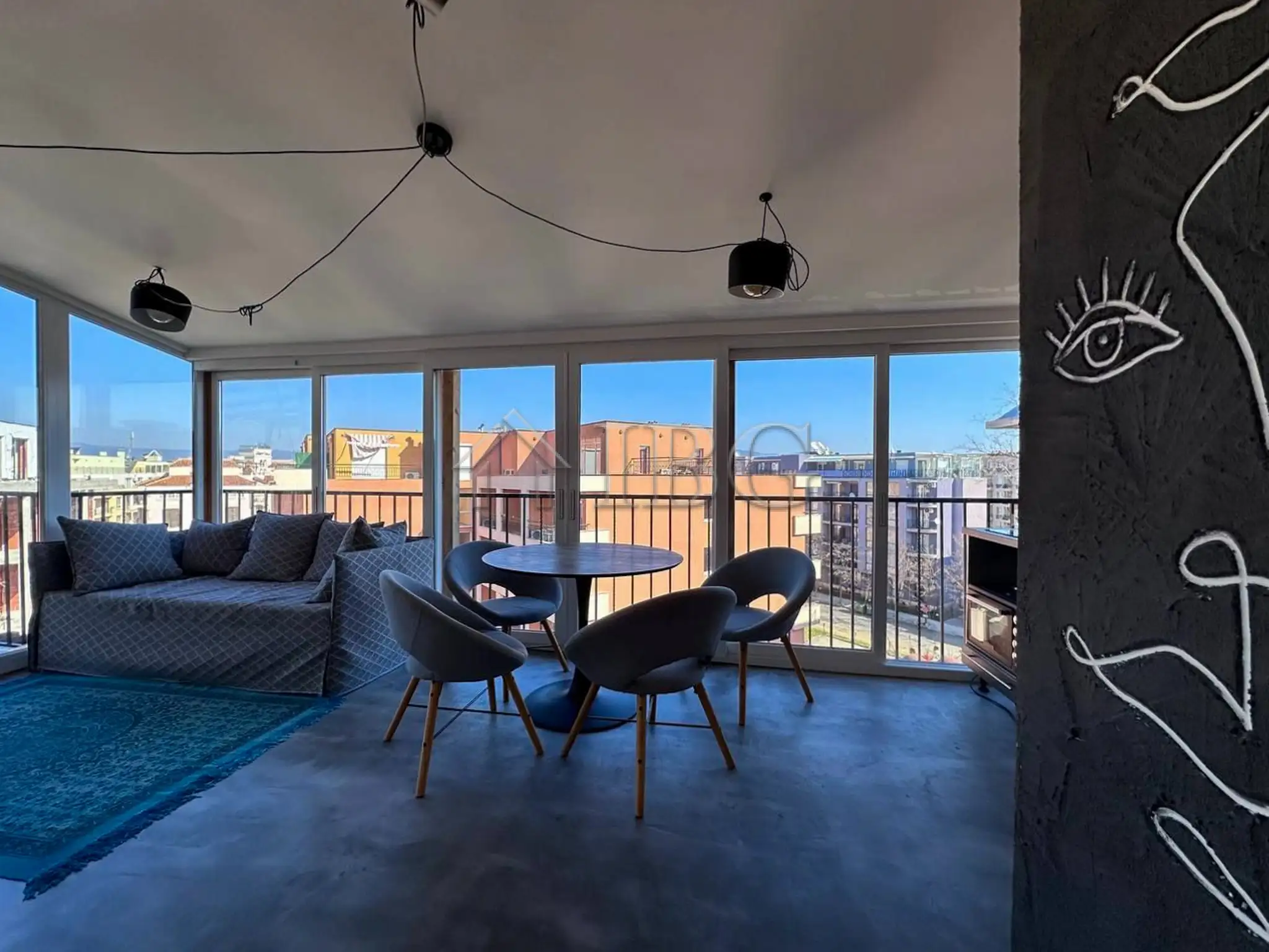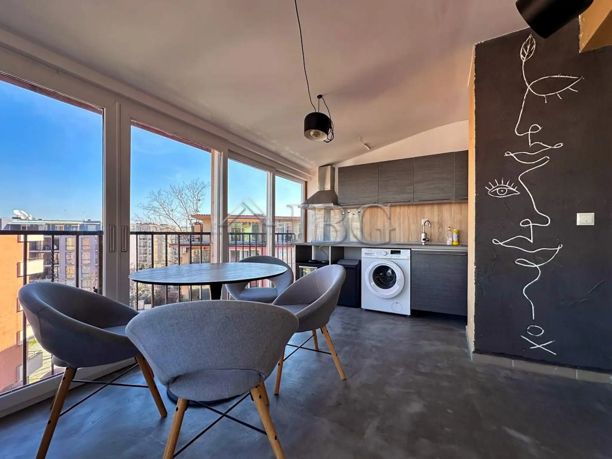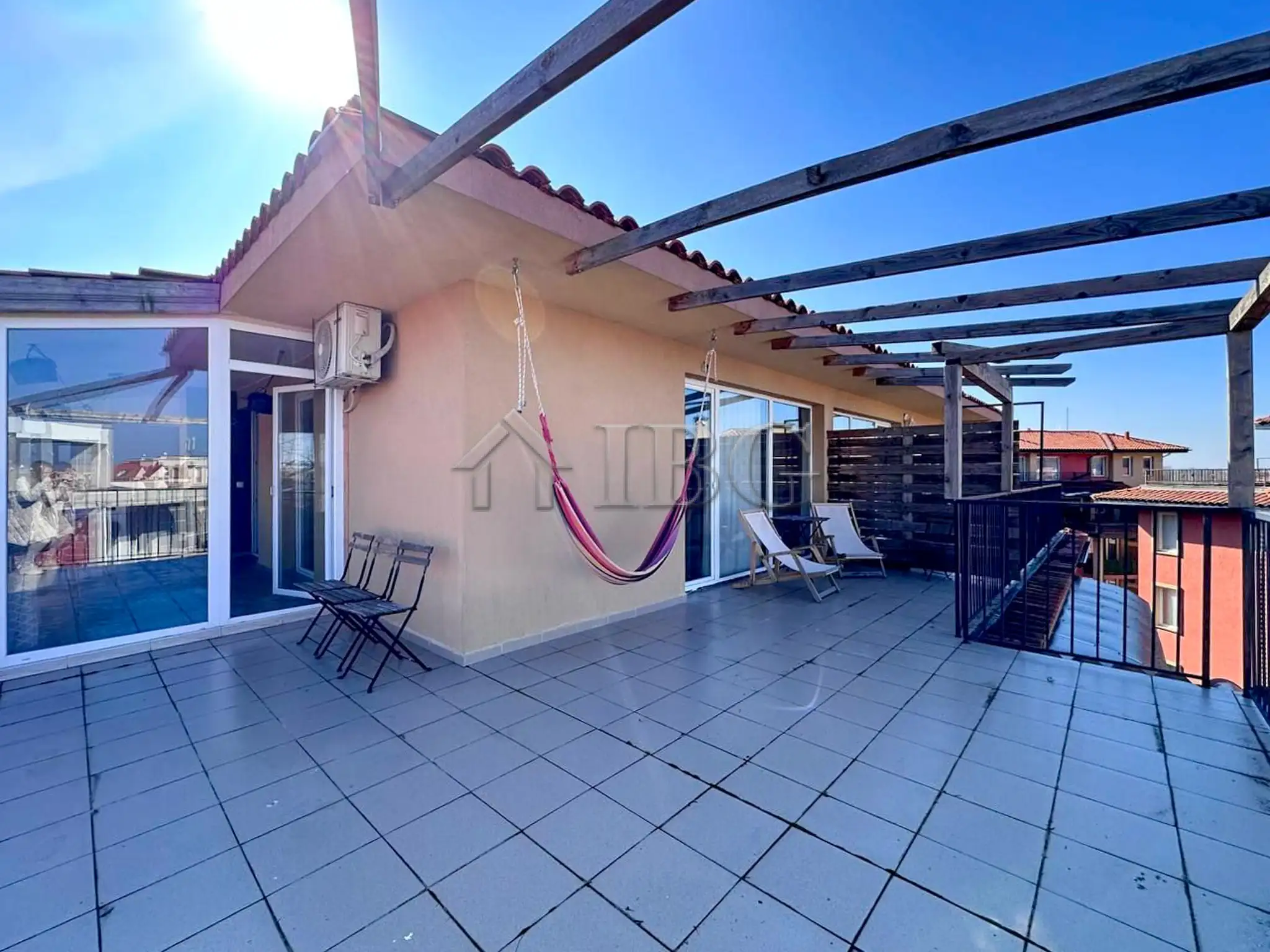 The apartment is with an area of 112 sq.m. and it consists of an entrance hall, a living room with kitchen and dining area, 2 bedrooms, 2 bathrooms and big terrace with enough space for adding BBQ are, dining table, sun lounges and much more for your comfortable living. The apartment is for sale furnished and equipped as it is on the pictures. The property is perfect for both seasonal and year-round use.