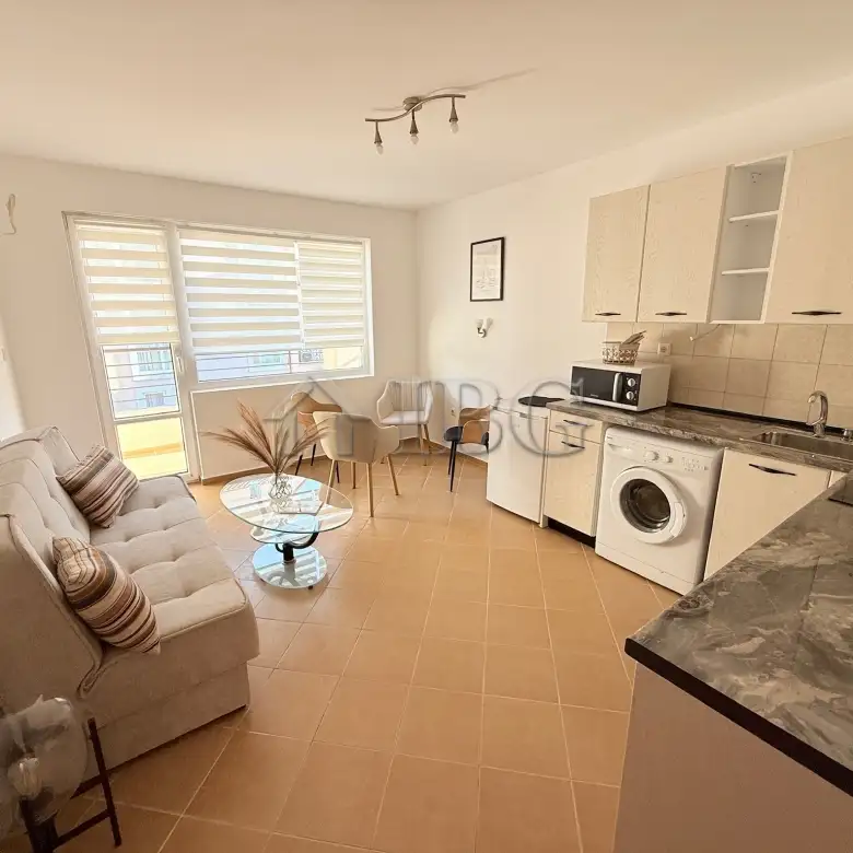 For sale a bright and fully furnished two-bedroom apartment in the modern Solis residential building, ideally located just 600 meters from the golden beaches of Sunny Beach, Bulgaria.