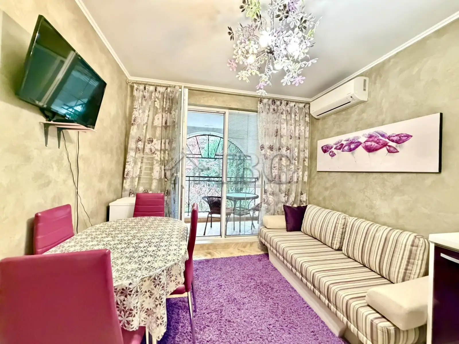 We are pleased to offer this furnished 1-bedroom apartment in the prestigious Venera Palace gated complex, located in the central part of the popular Sunny Beach resort. The property is situated on the 2nd floor of a 6-story building and offers a total area of 46.09 sq.m. + underground park space with area 18.43 sq. m.