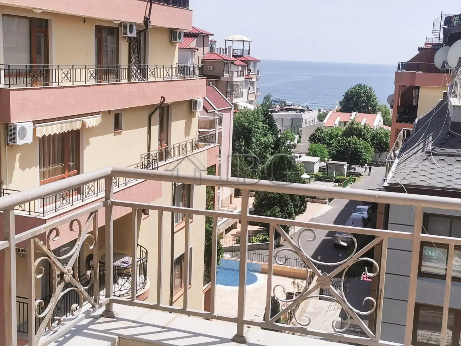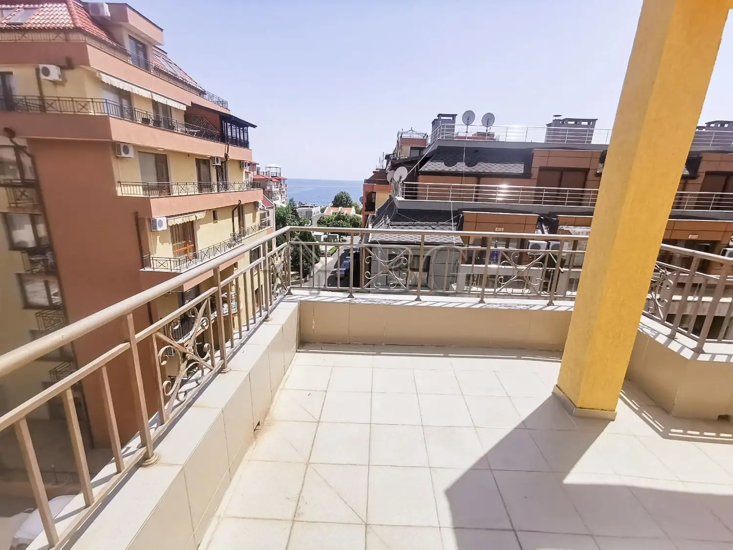 IBG Real Estates offers for sale a spacious two-bedroom apartment located on the 5th floor in a gated complex in Sveti Vlas, just 400 meters from the sea. The apartment stands out with a huge panoramic terrace surrounding the apartment, offering magnificent views towards the sea on one side and the pool and mountains on the other.