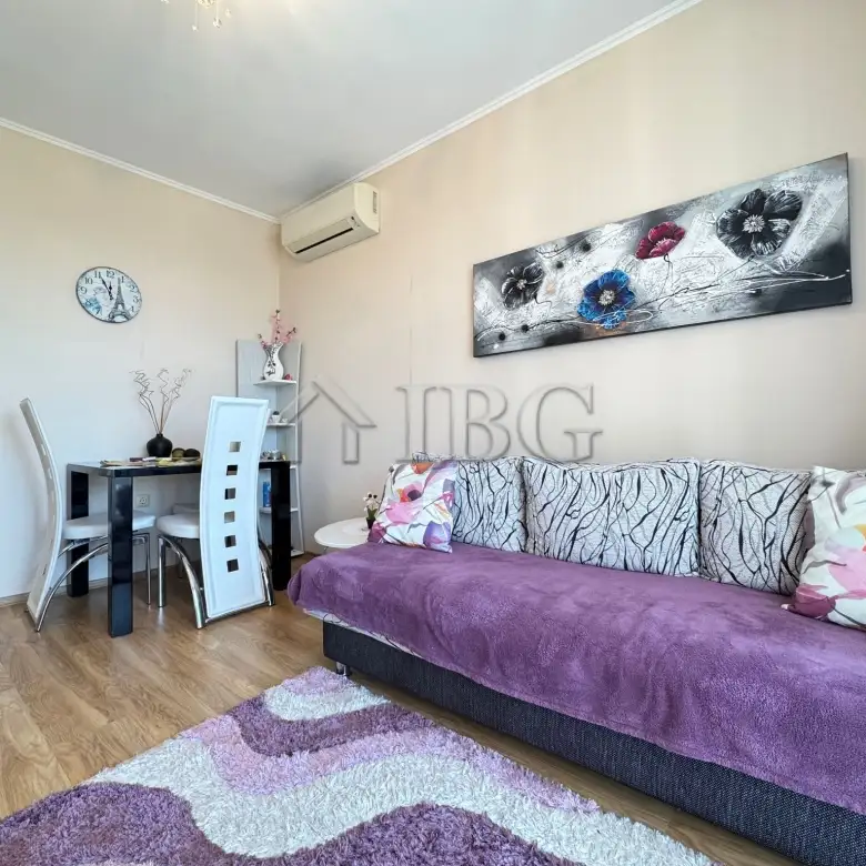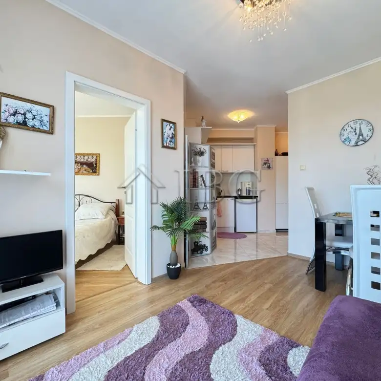 IBG Real Estates offer for sale this 1-bedroom apartment located on the 2nd floor in Izida Palace. IZIDA has excellent location, it is close to the beach, restaurants, shops, bakery, bus stop and it is surrounded by newly built complexes and greenery. Owners in Izida use all facilities – 2 swimming pools, indoor pool, SPA center with Jacuzzi, showers and recreation area and steam room, massages, etc. The use of steam bath, Finnish sauna with Himalayan salt, infrared sauna, shock bucket, relaxation area with sun beds in the SPA center is included in the maintenance fee and it is free of charge for owners. The use of the indoor heated swimming pool is also included in the maintenance fee. The complex is open all year round and offers comfort and luxury at affordable prices!