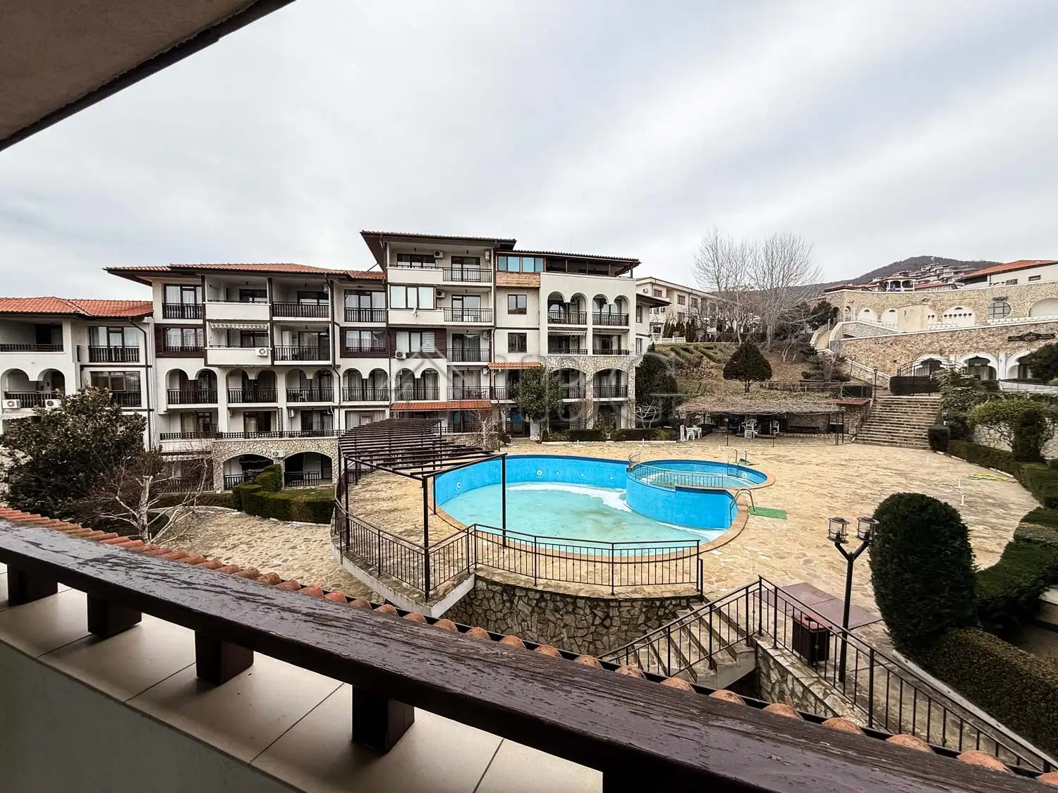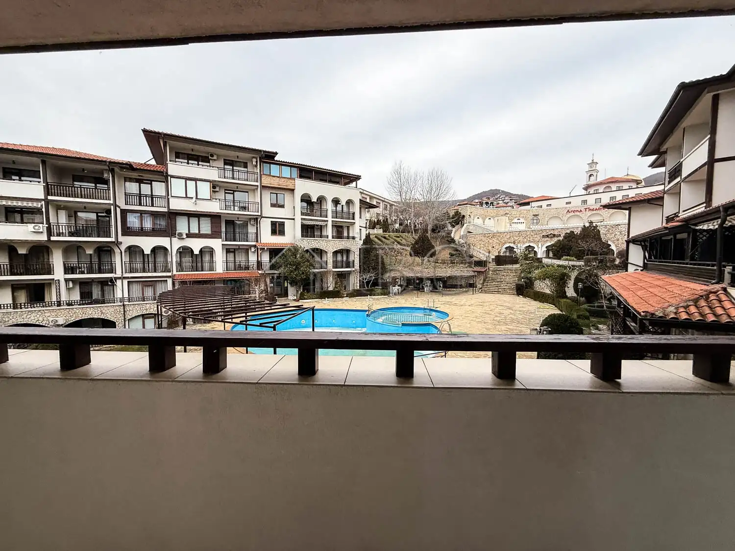 We are pleased to offer for sale a fully furnished one-bedroom apartment in the prestigious Arena 1 complex, located directly on the beachfront, next to the iconic Marina Dinevi yacht port in Sveti Vlas.