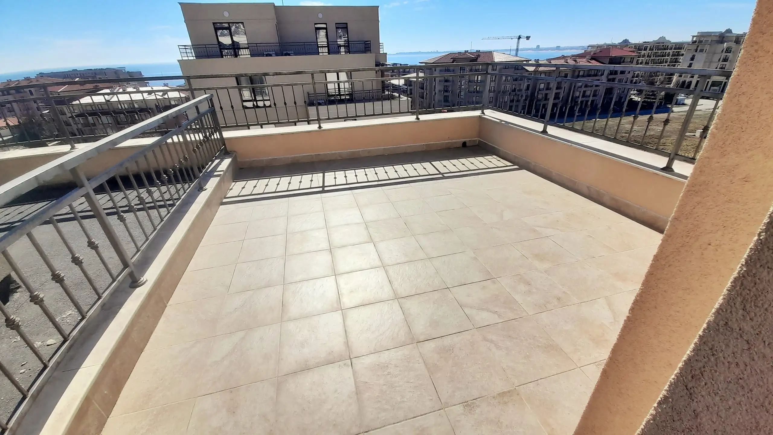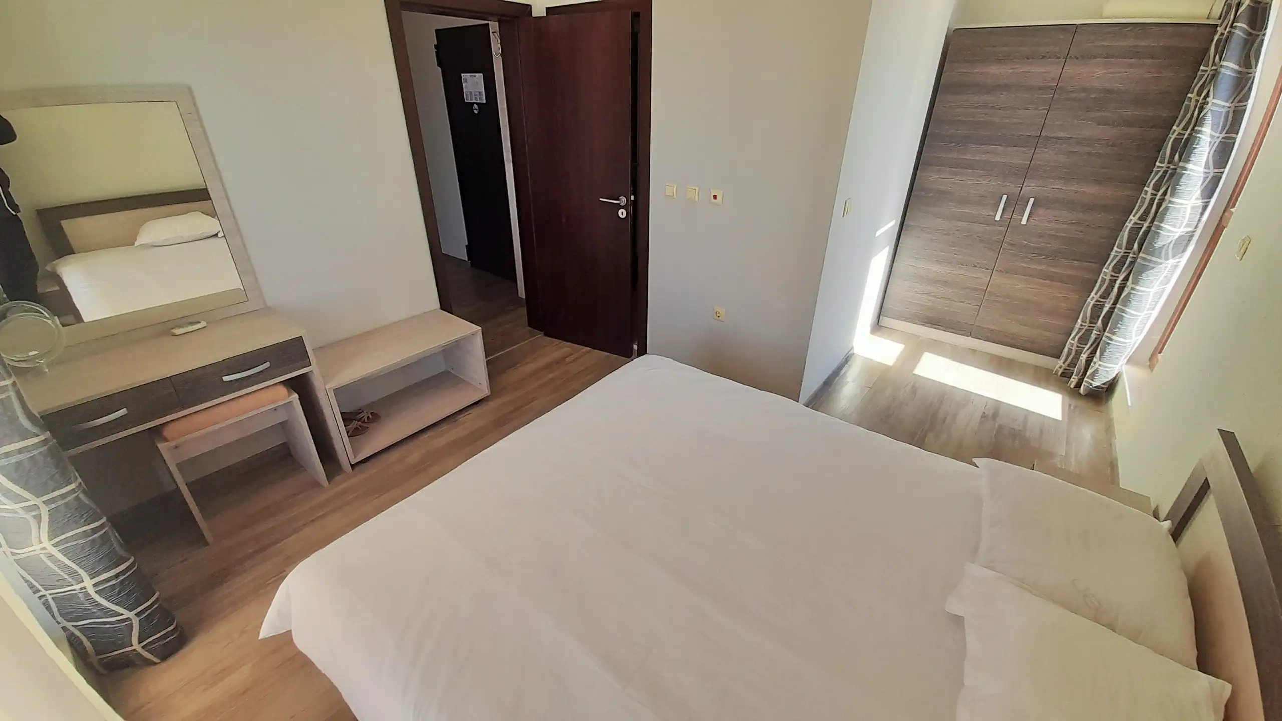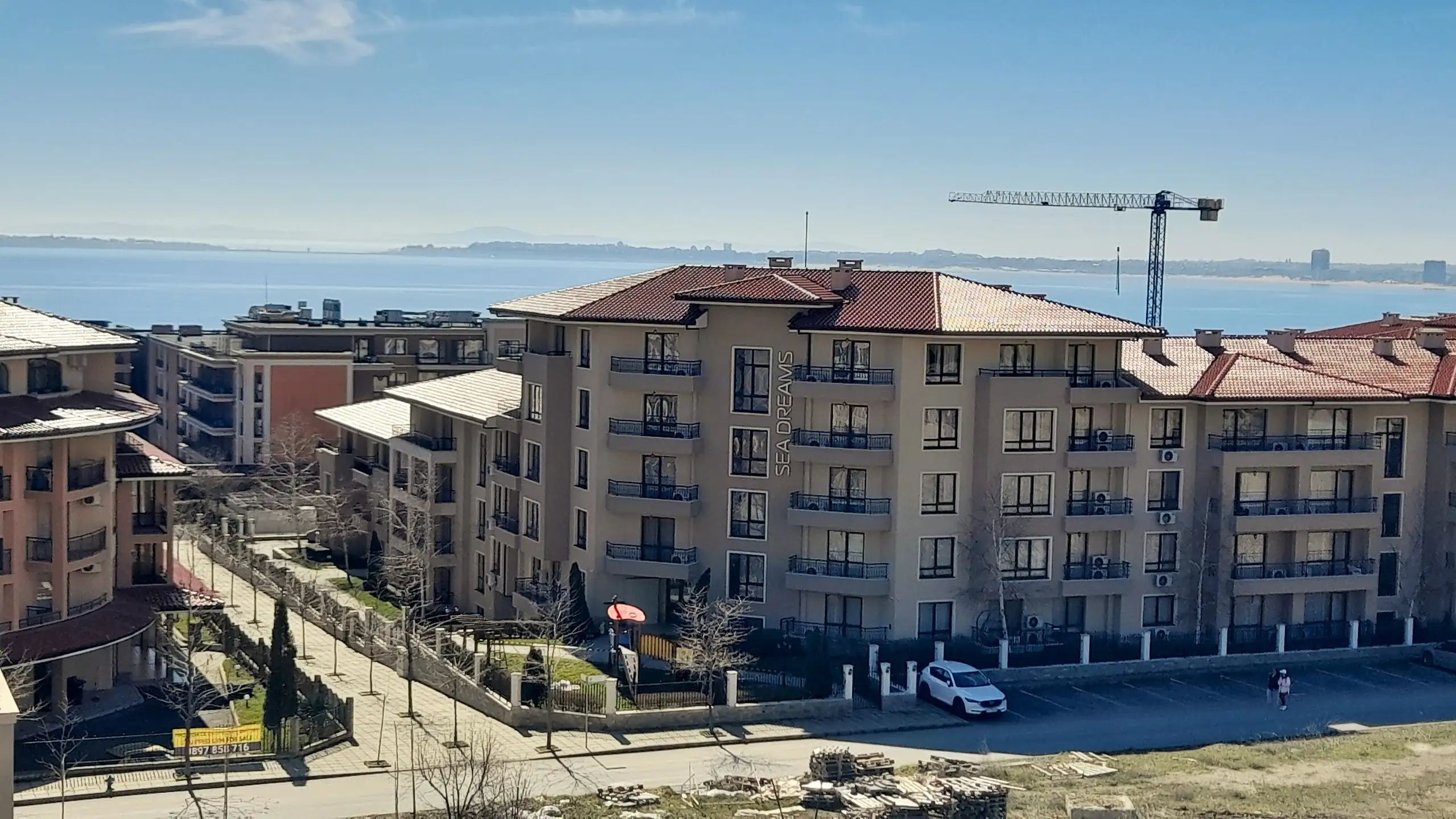 One Bedroom apartment located on the 4th floor in complex Sorento Sole Mare. The complex is located in a quiet area between the resorts of Sunny Beach and St. Vlas at 300 meters from the sea and the beautiful sandy beach. Sorento Sole Mare is a new built gated complex with big swimming pool with children’s section, located among green areas, reception, spacious lobby, playground and parking.