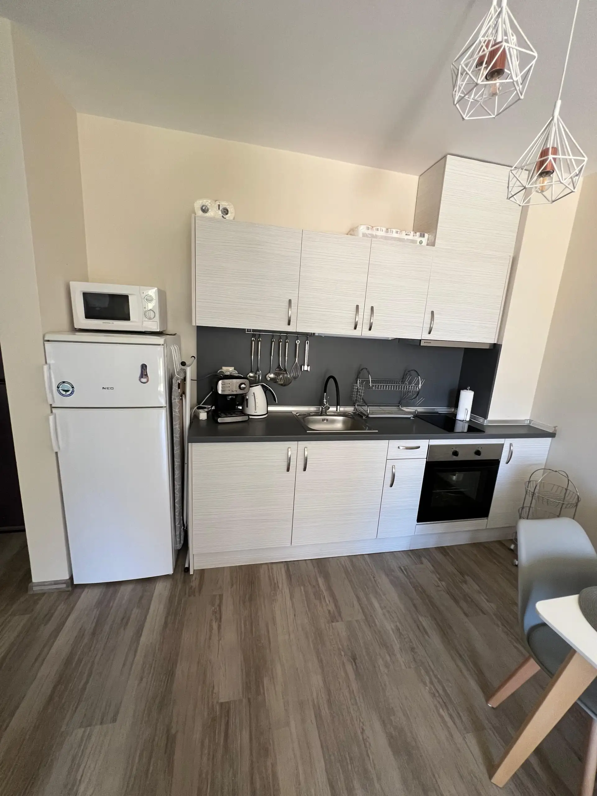 One Bedroom apartment located on the third floor in complex Sorento Sole Mare. The complex is located in a quiet area between the resorts of Sunny Beach and St. Vlas at 300 meters from the sea and the beautiful sandy beach. Sorento Sole Mare is a new built gated complex with big swimming pool with children’s section, located among green areas, reception, spacious lobby, playground and parking.