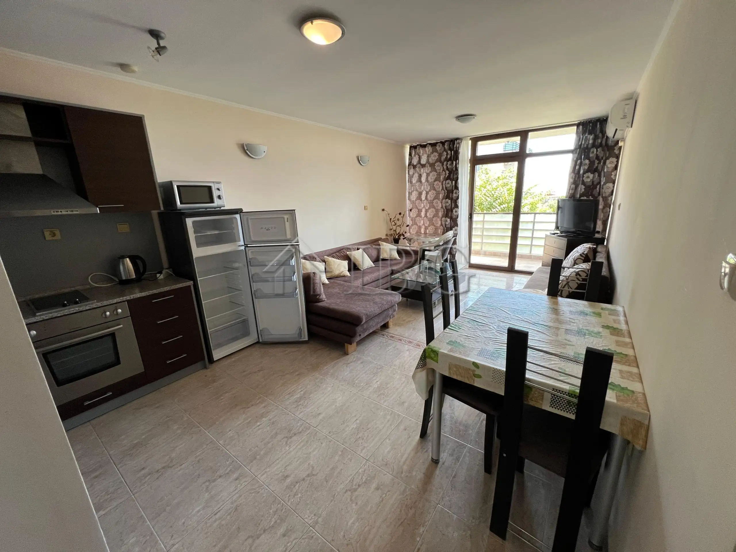 We are excited to present a beautiful one-bedroom apartment in the prestigious Diamant complex, perfectly located on the first line of the sea in Sveti Vlas, just a short walk from the sandy beach, local bars, and water sports activities. The complex occupies a prime area of the resort, offering lush landscaped gardens and top-quality infrastructure across 24,000 m².