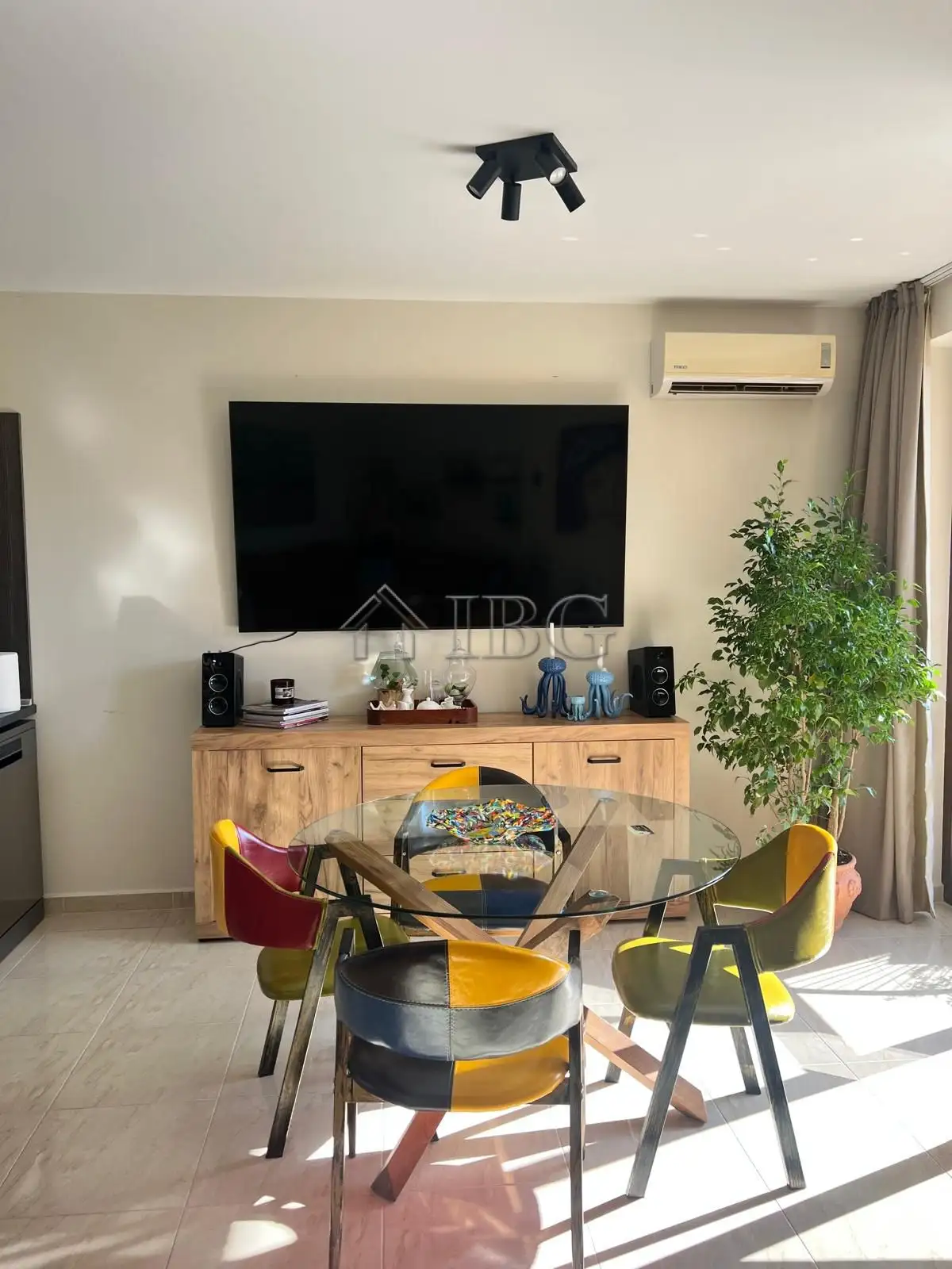 We are pleased to offer a one-bedroom apartment with a total area of 56.06 m², located on the fourth floor of the prestigious Star Dreams Complex in Sveti Vlas. The apartment features a spacious living room with kitchenette, one comfortable bedroom, a bathroom with toilet, and a balcony offering views of the main swimming pool, children’s playground, and a partial sea view. Fully furnished and equipped, the apartment is ready to move in immediately, making it ideal for personal use or as a rental investment.