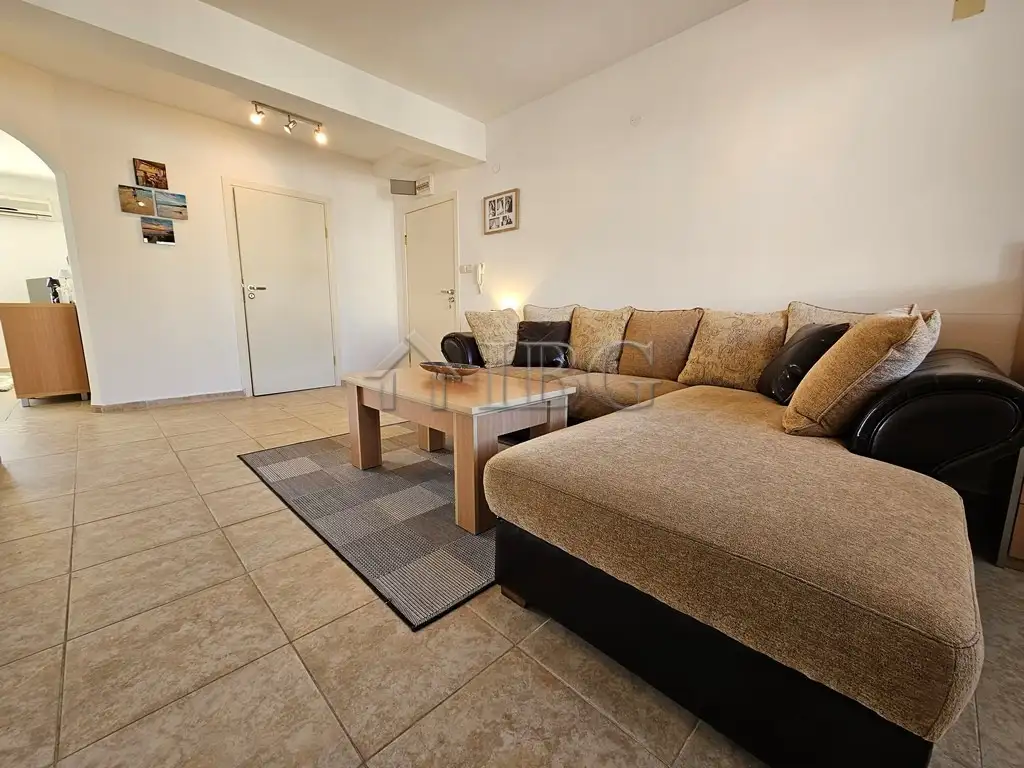 The property for sale is 93 sq.m. + parking, the apartment consists of living room with kitchen and dining area, 3 balconies, 2 bedrooms, a bathroom with toilet and sink. There are three balconies, two larger ones with sea view and a smaller functional one. The apartment is sold together with its own separate parking spot right in front of the complex. The property is for sale furnished, as shown on the pictures.