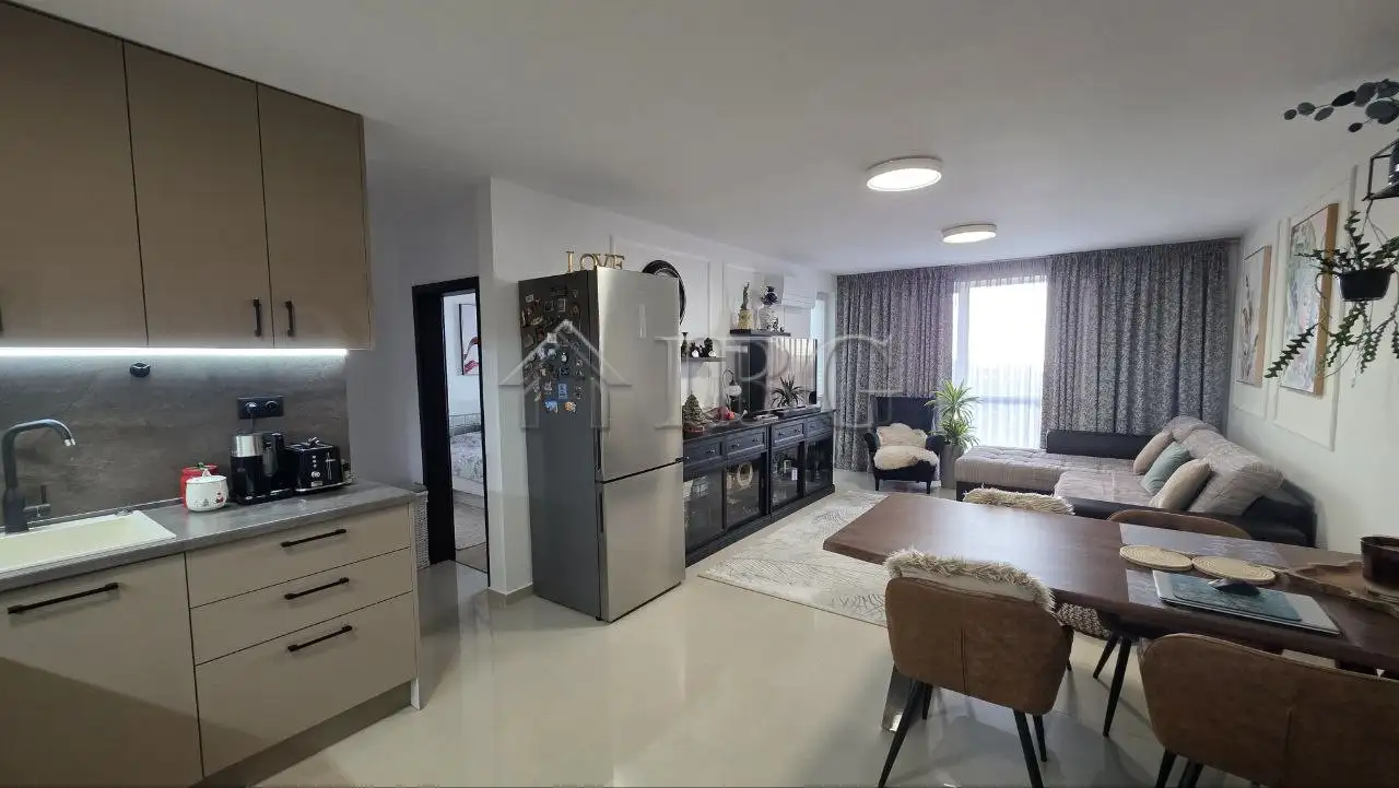 We are pleased to offer for sale a spacious and perfectly maintained two-bedroom apartment, located in Butterfly Complex, one of the desirable residential areas of Sveti Vlas. The apartment is situated on the 5th (top) floor, with elevator access, and enjoys beautiful views of the sea on one side and the mountains on the other.