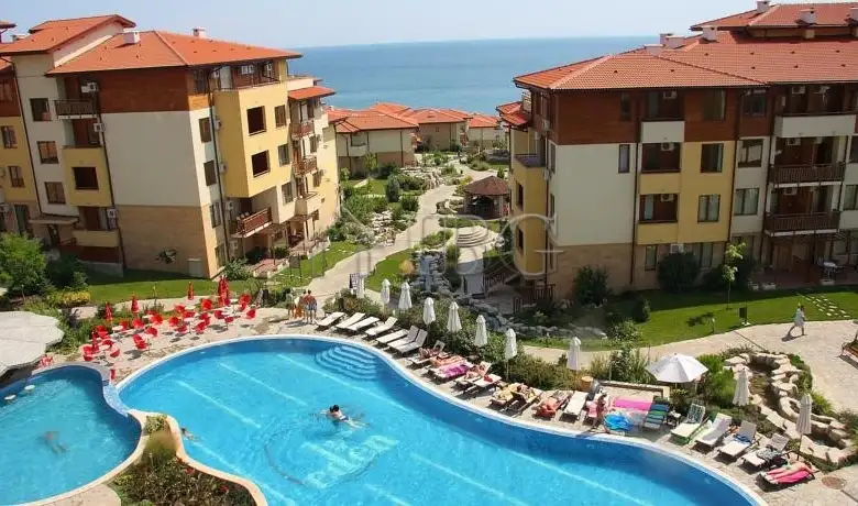 Discover your dream home by the sea! This spacious 2-bedroom apartment is located on the ground floor of the prestigious Garden of Eden complex – a beachfront paradise in Sveti Vlas. Offering breathtaking views of the sea and the historic town of Nessebar, this exceptional property is perfect for permanent living, holiday escapes, or rental investment.