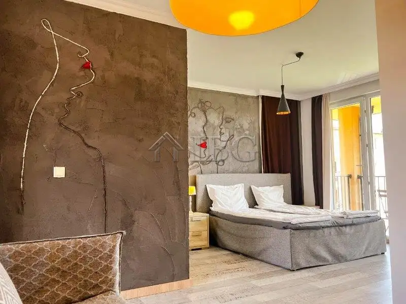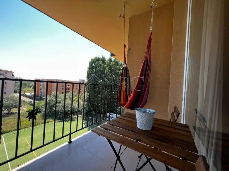 For sale is this nicely modern furnished apartment located on the 4th floor, in Sunny View Central, Sunny Beach. This is a gated complex that enjoys an excellent location, situated at about 500 m from two beach zones – "Cacao Beach" and "Bedroom." At the same time, Sunny View Central is placed near the center where are the best restaurants, cafes and shops in the resort. The city-museum of Nessebar with many attractions and historical monuments is 10 minutes from the complex. There is also a big football field with animation program during the season. The area is suitable for swimming and practicing a variety of water sports and spa treatments.