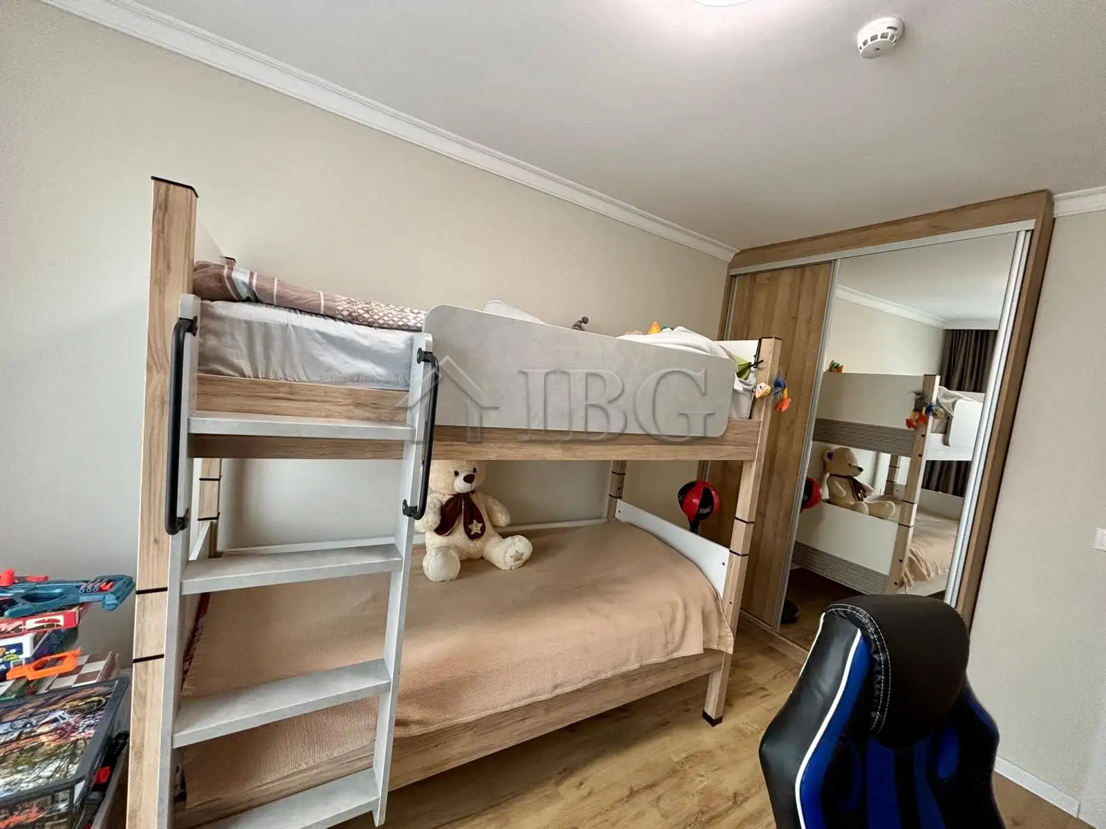 Children’s bedroom with bunk bed and storage