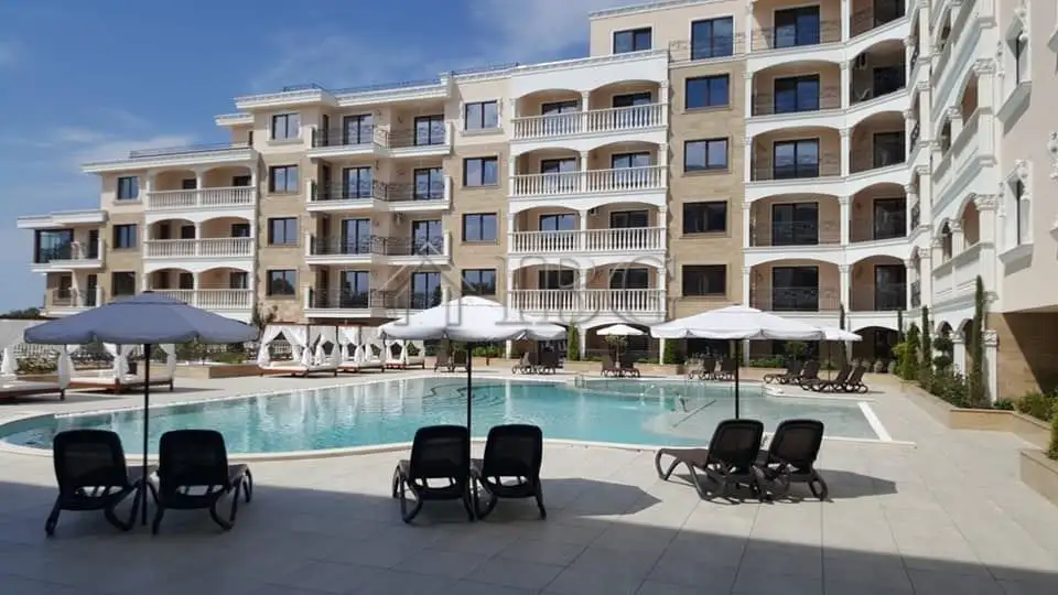 Furnished 1-bedroom apartment in the prestigious Valencia Gardens complex, Nessebar. Situated just 180 meters from the South Beach, this property combines luxury, comfort, and a prime seaside location.