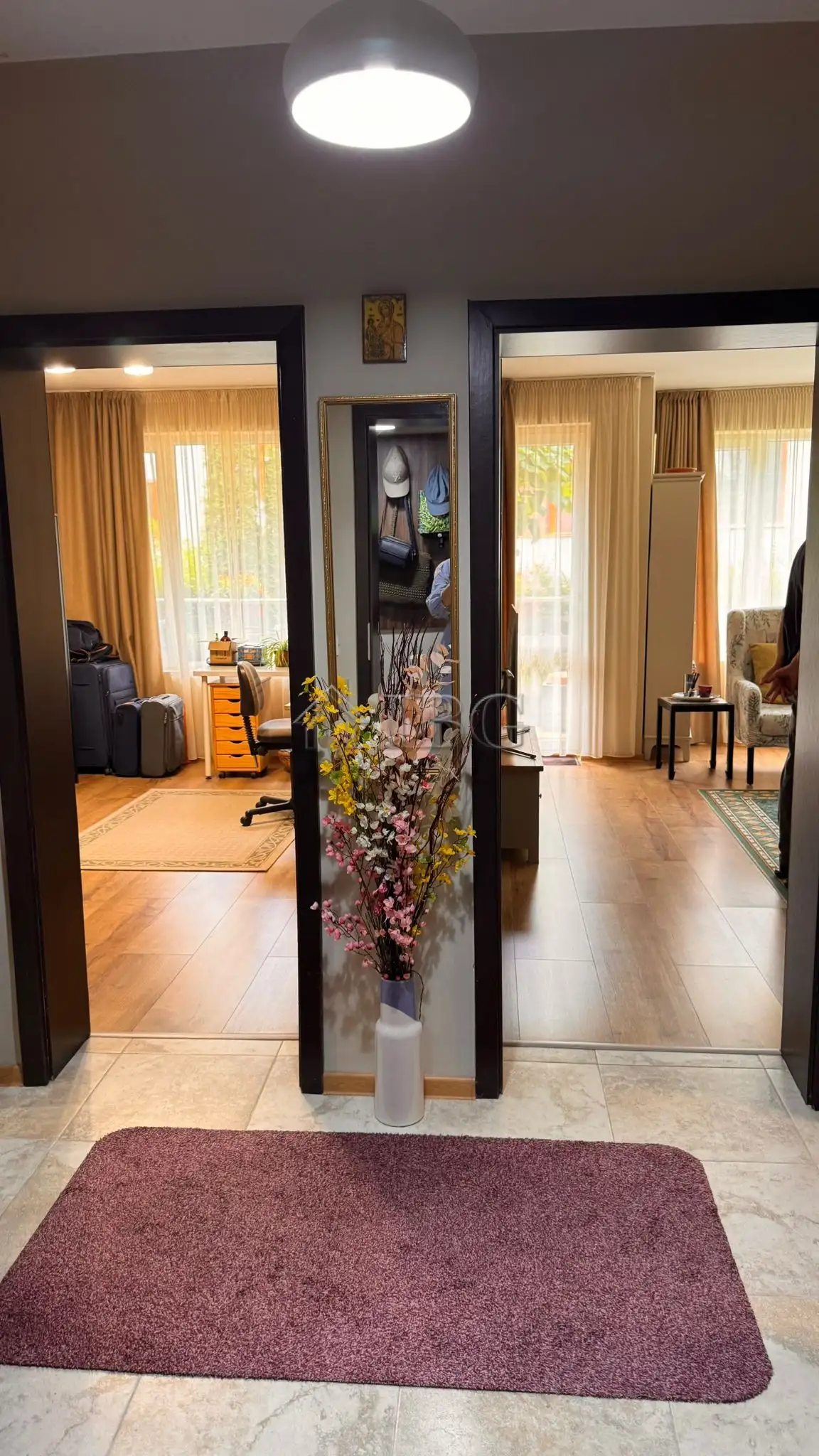 We are pleased to offer for sale a spacious multi-room apartment with a courtyard view in the Mirni Complex, part of the prestigious Millennium Complex in Sveti Vlas. Located on the ground floor, the apartment consists of two connected units with a total area of 151 sq.m., featuring an entrance hall, spacious living room, office, large dining area with a separate kitchenette, two bedrooms, two bathrooms with shower cabins, closet, and two terraces overlooking the landscaped courtyard.