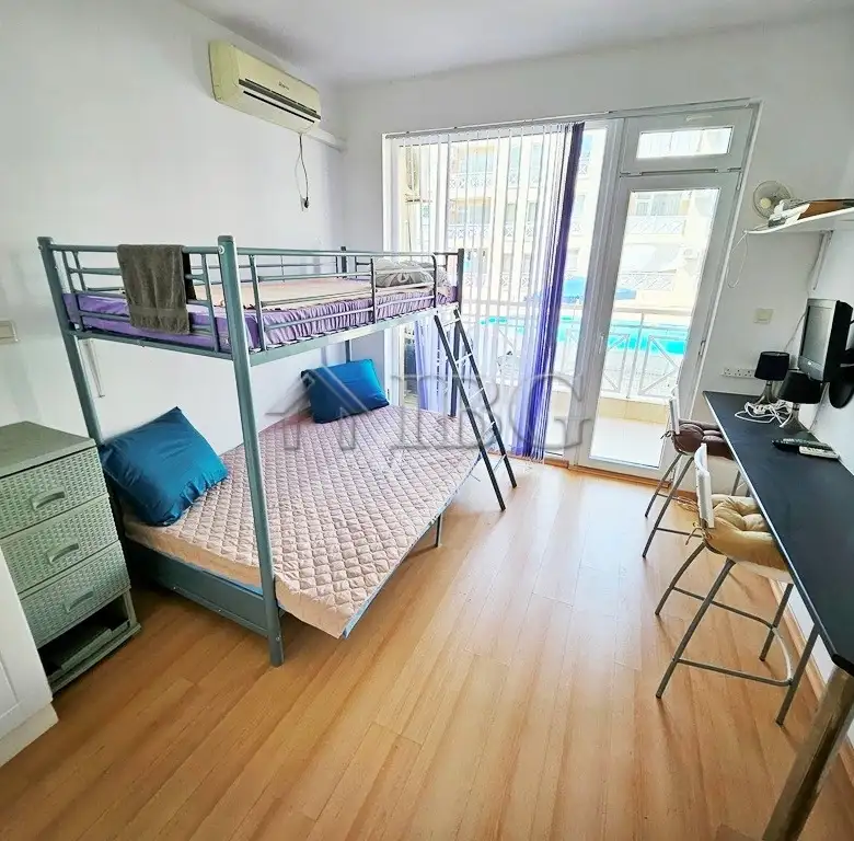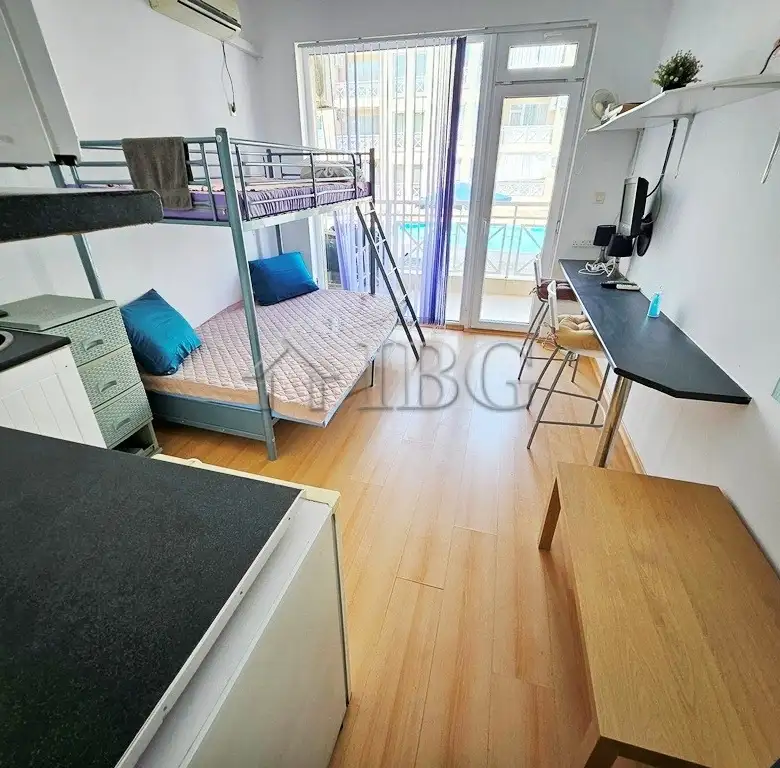IBG Real Estates is pleased to present this lovely furnished studio, located on the second floor (without elevator) in the Sunny Day 6 Complex, Sunny Beach. The complex is well-maintained and functions all year round, situated just 3 km from the beach — perfect for both holiday stays and permanent residence.