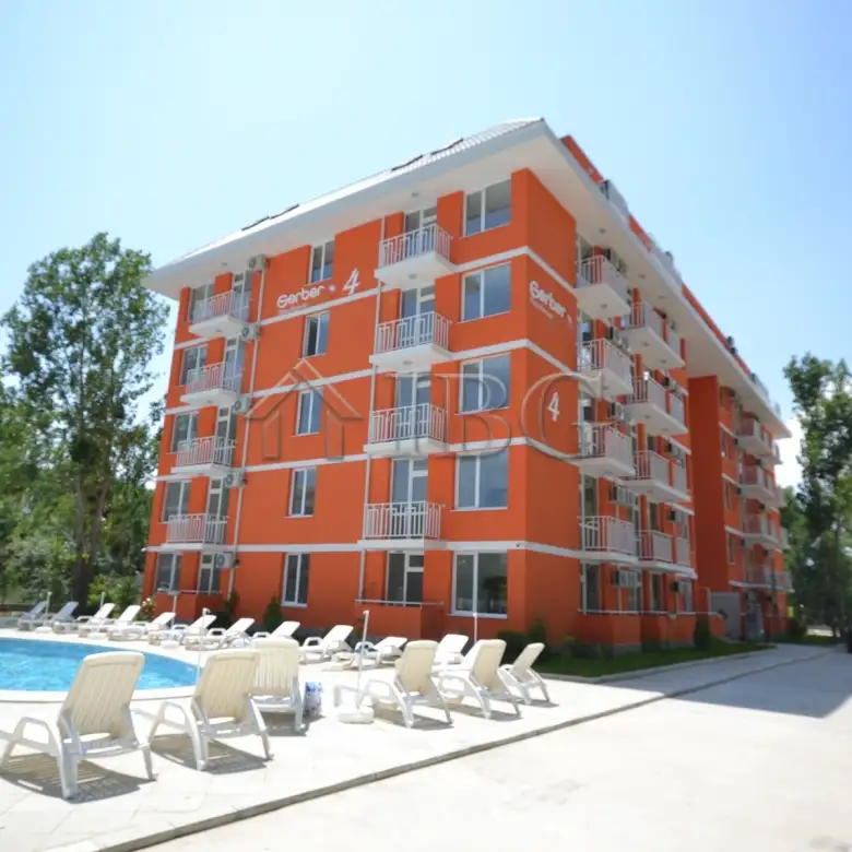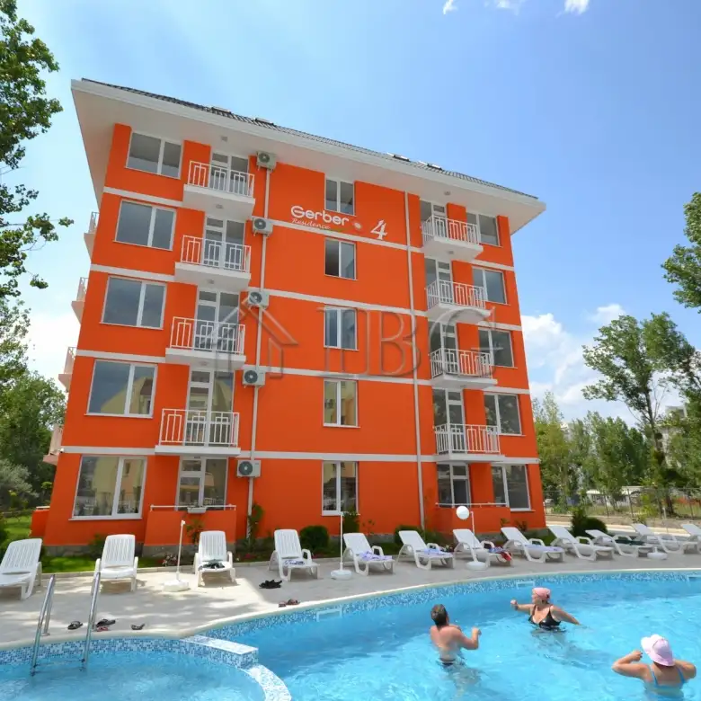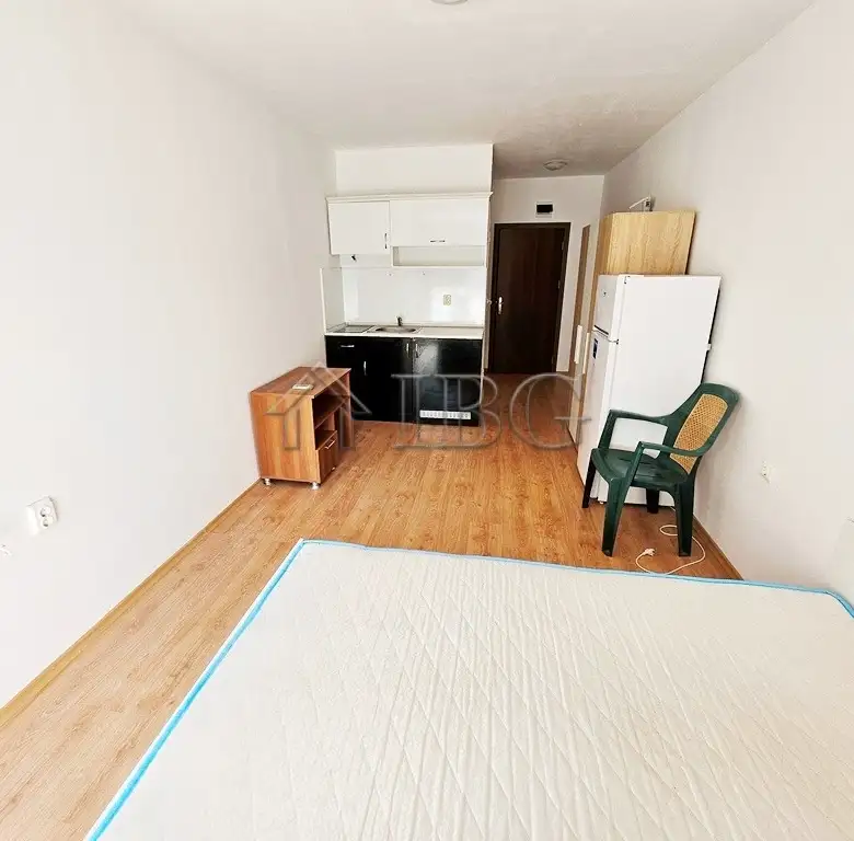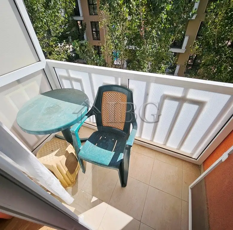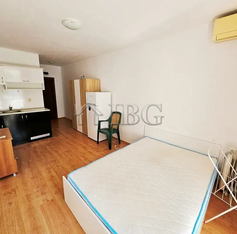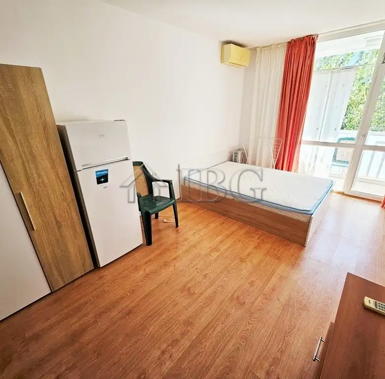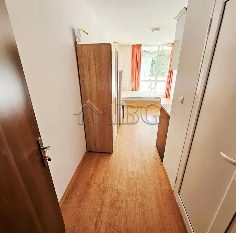 IBG Real Estates offers for sale this studio apartment, located on the 5th floor (with elevator) in Gerber 4 complex, Sunny Beach. The complex is in one of the greenest areas of the resort, only about 500 meters to the beach, and close to shops, restaurants, and supermarket Mladost.