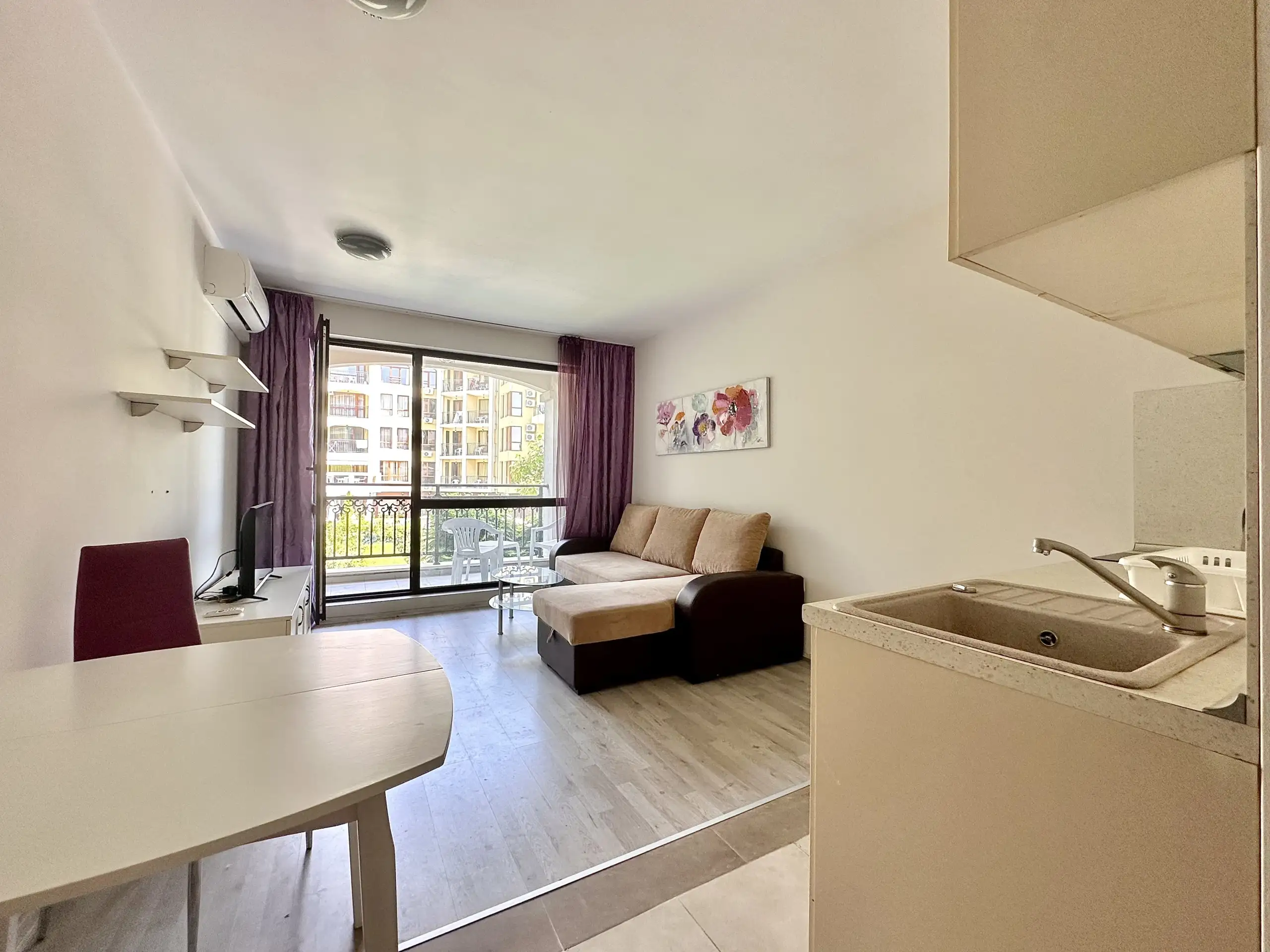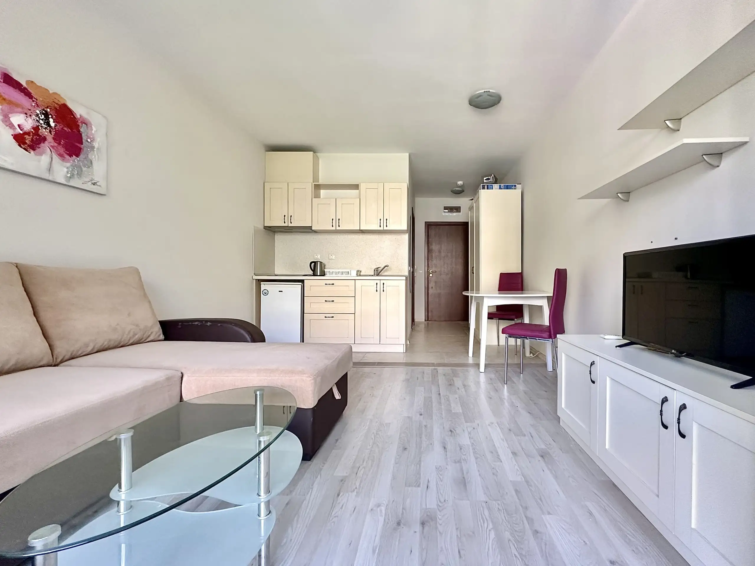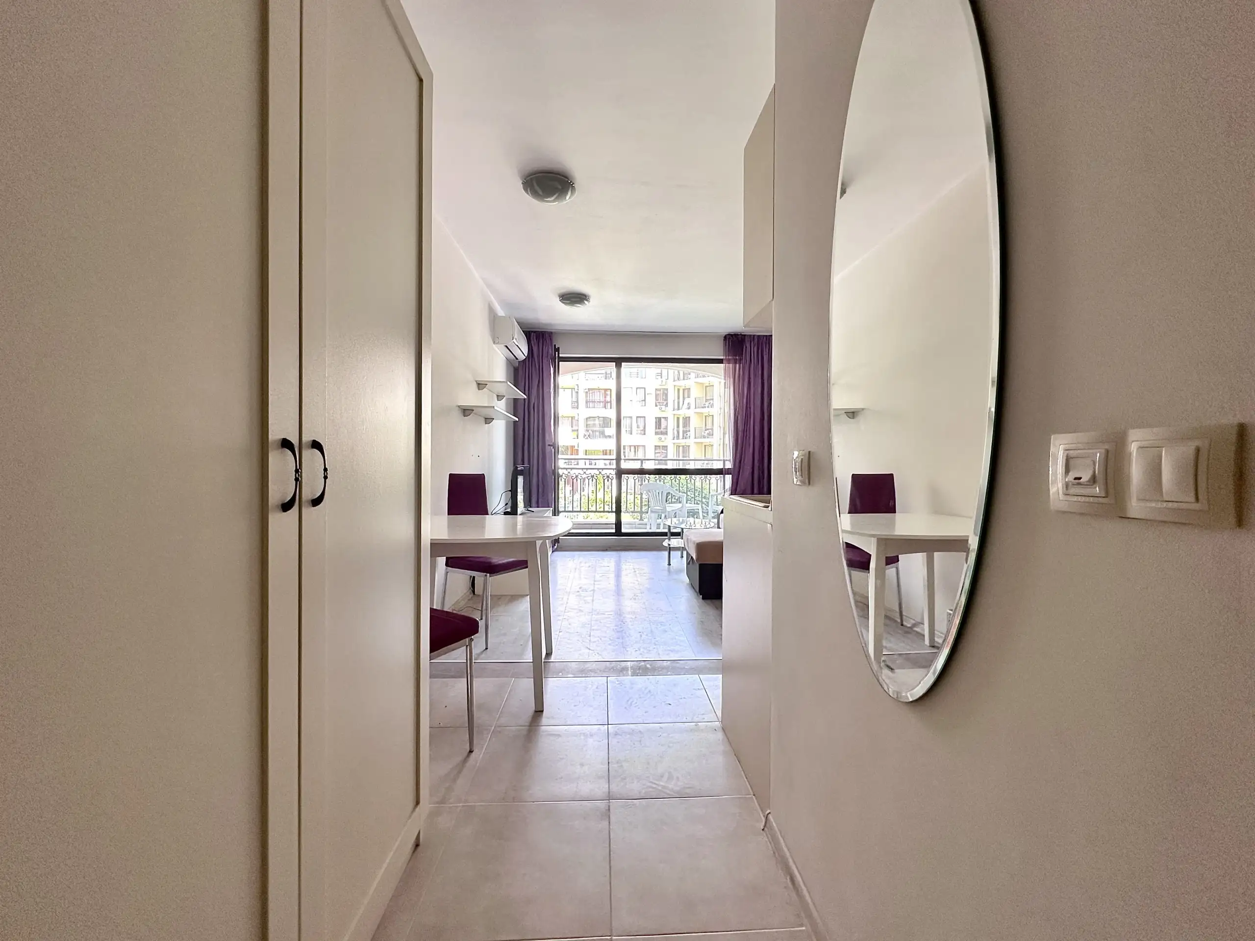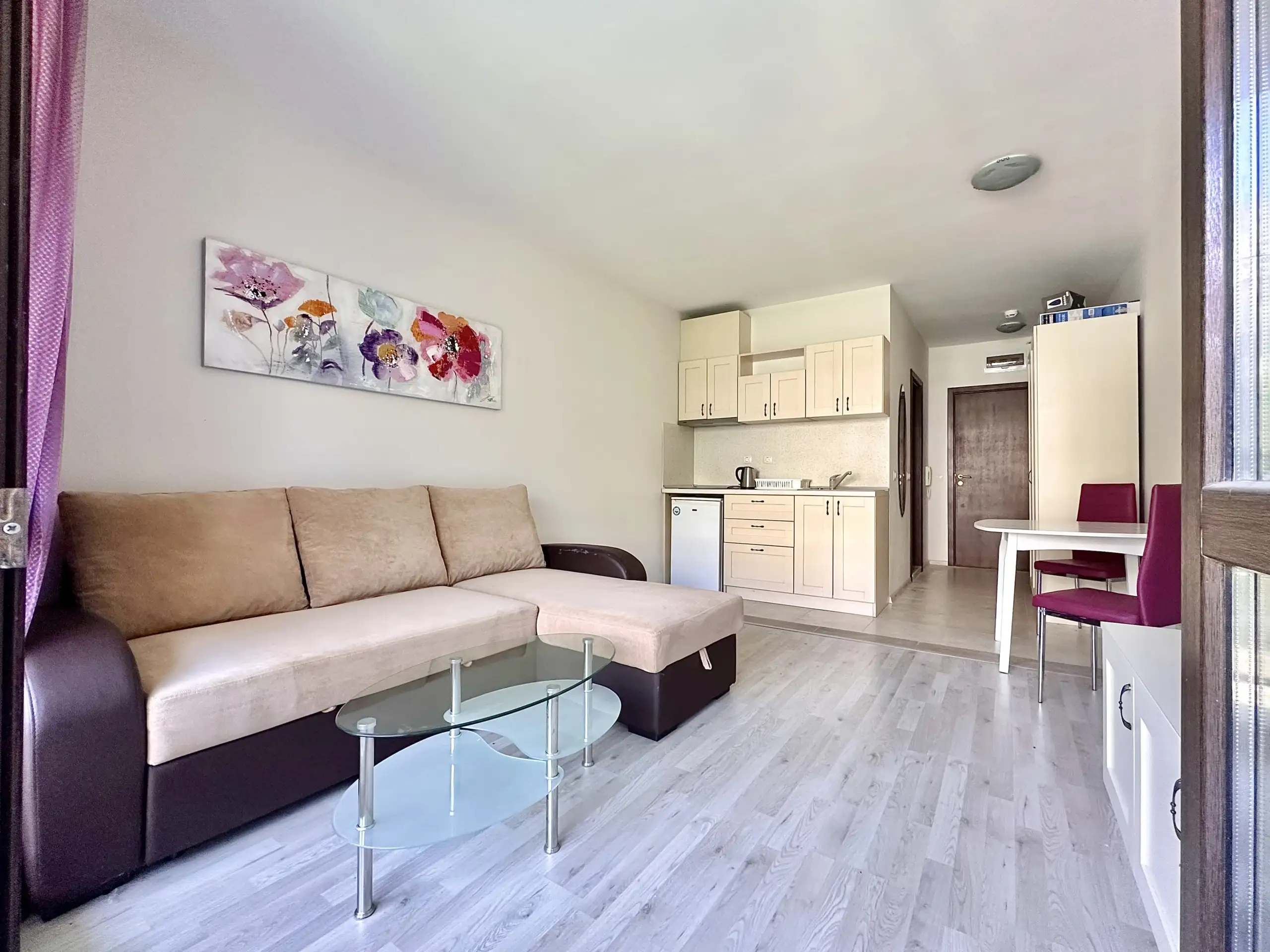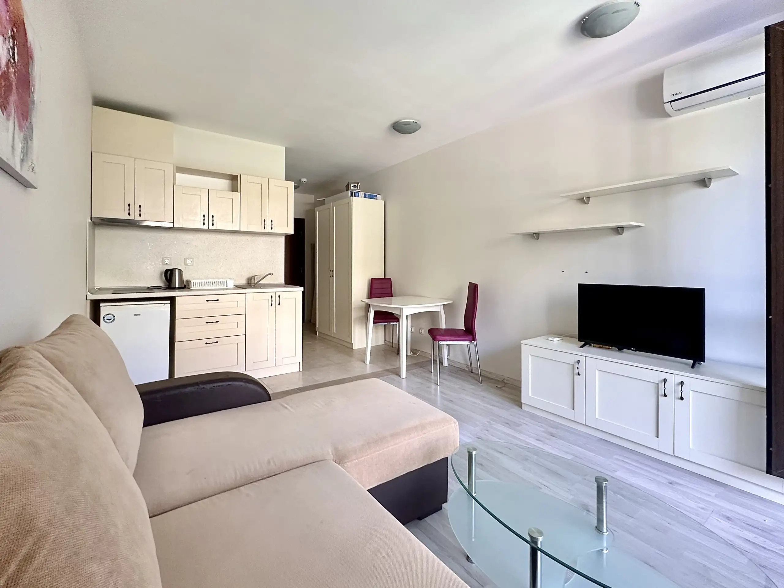 We are pleased to offer this spacious, fully furnished studio apartment located on the 2nd floor in a modern residential complex in Sunny Beach, just 800 meters from the sea. The complex has Act 16 since 2013 and is suitable for year-round living.