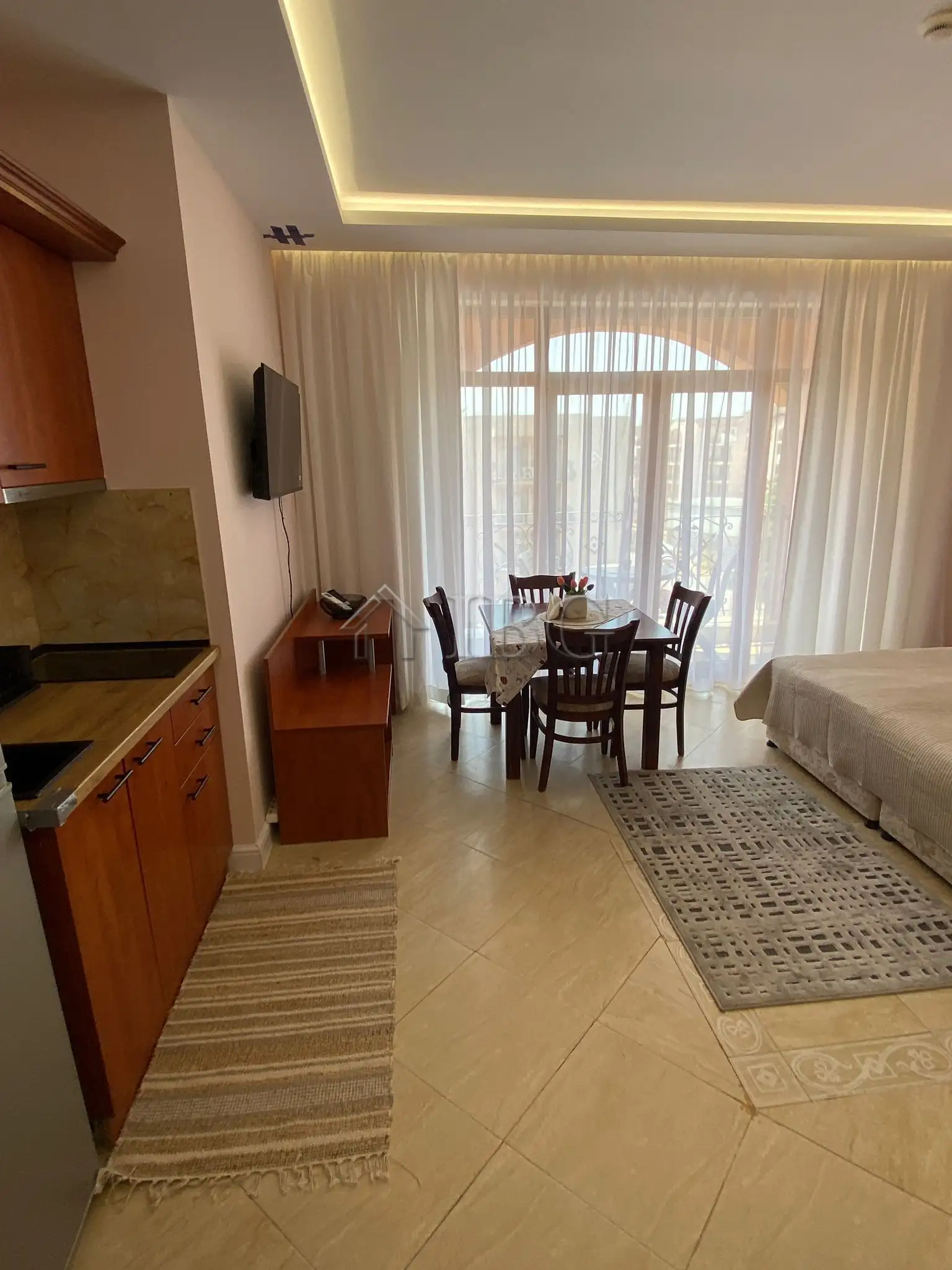 We offer for sale a very spacious studio with a pool view in the Palazzo Complex, located in the southwestern part of Sunny Beach, just 300 meters from the beach and the sea.