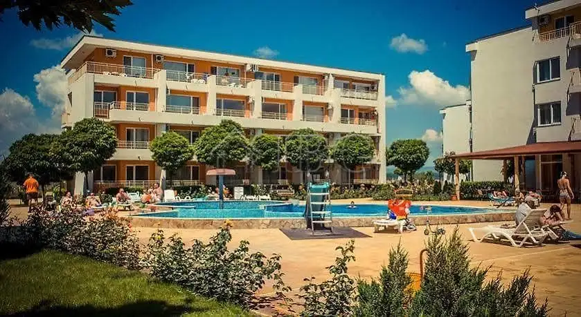 IBG Real Estates offers for sale a furnished studio in the popular Holiday Fort Noks complex, ideally located next to the Aqua Park and just a short walk from the beautiful 8-km sandy beach of Sunny Beach. The complex is situated in a quiet area, away from the busy center and offers everything needed for a comfortable holiday or year-round living.