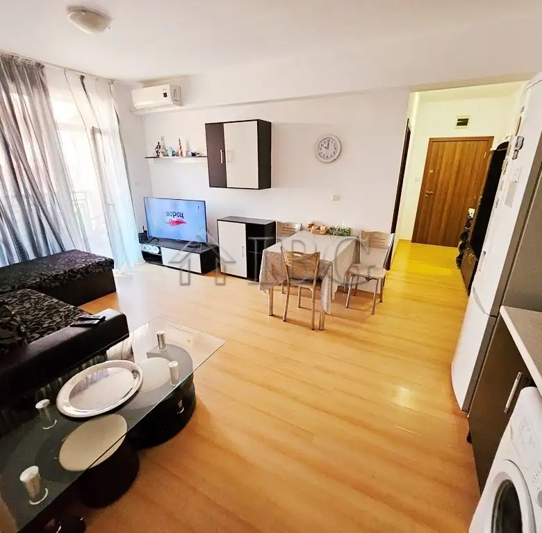 The apartment is with an area of 73 sq.m. and for sale furnished as it is on the pictures. It consists of an entrance hall, a spacious living room with kitchen and dining area, 2 bedrooms, a balcony with access from all 3 rooms and a bathroom with shower cabin, toilet and sink. The apartment is suitable for permanent living, holidays or rental.