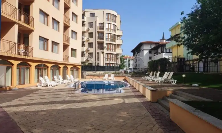 IBG Real Estates offers for sale this furnished 1-bedroom apartment, situated on the 2nd floor in complex Sunny Sea Palace, Sunny Beach. The property has a pool view and is located just 300 meters from the beach, making it perfect for year-round living, holidays, or as an investment.