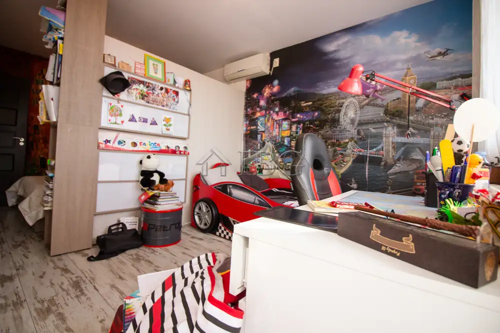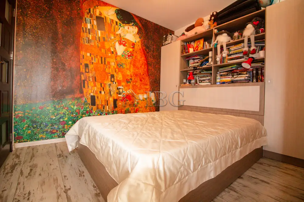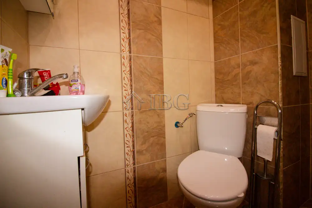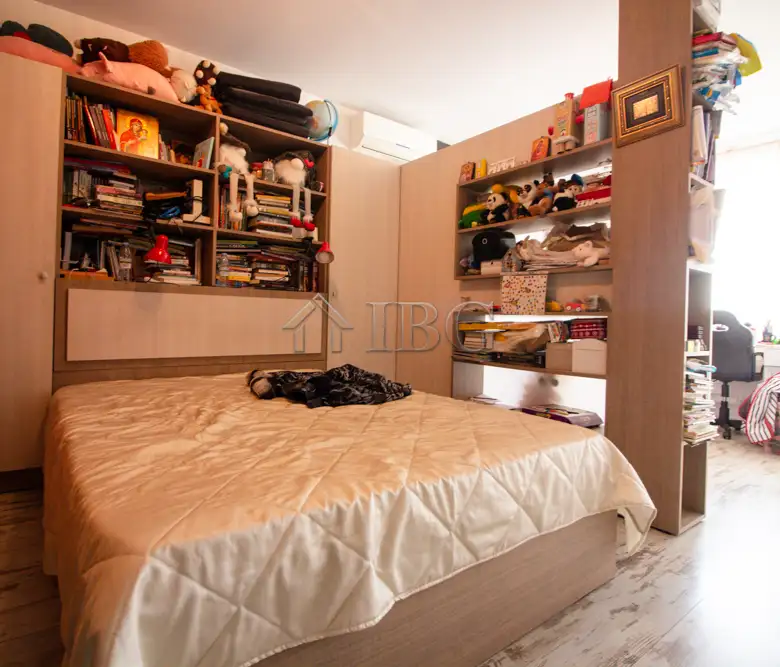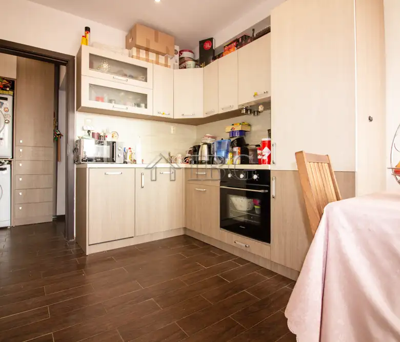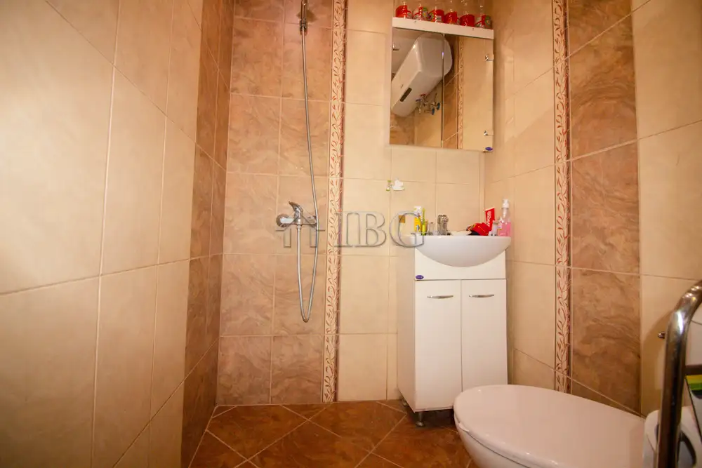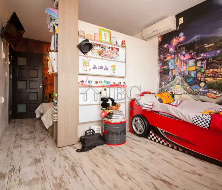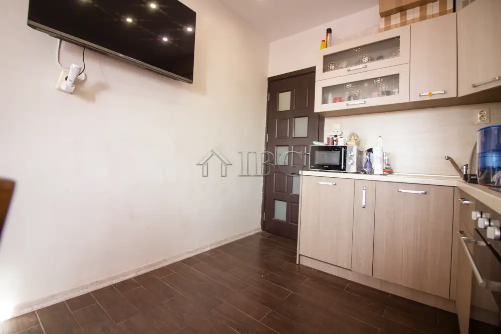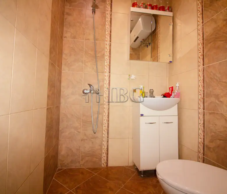 The apartment for sale is with area of 52.00 sq.m. and it consists of a corridor, kitchen with dining area, large and bight living room, which currently is distributed between parent bedroom and children’s room with access to a sunny glazed terrace and a bathroom with toilet. The apartment is fully renovated with quality and expensive materials and custom furniture. The property is with quality joinery, outher insulation and central heating, very bright and warm. There are installed air conditioners for heating and cooling. The property offers and basement which is situated on the 3rd floor and it is transformed in a cabinet. The apartment is for sale fully furnished and equipped, ready to move in.