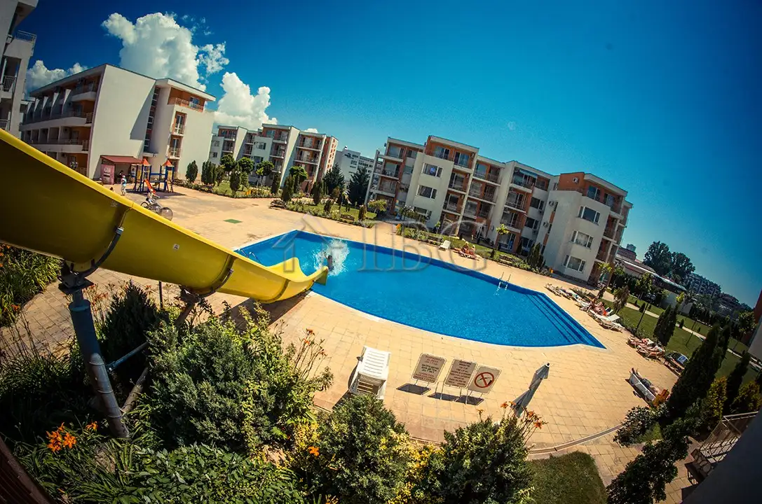 IBG Real Estates offers for sale a furnished 1-bedroom apartment, located on the 4th floor in the popular and well-maintained Nessebar Fort Club complex – right across from the Aqua Park and only a 10-minute walk from the beach and central Sunny Beach.