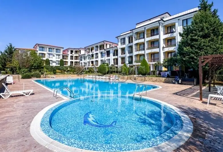 A cozy one-bedroom apartment is for sale in the Rutland Beach 1 complex, located only 100 meters from the sea and 650 meters from the South Beach of Ravda.