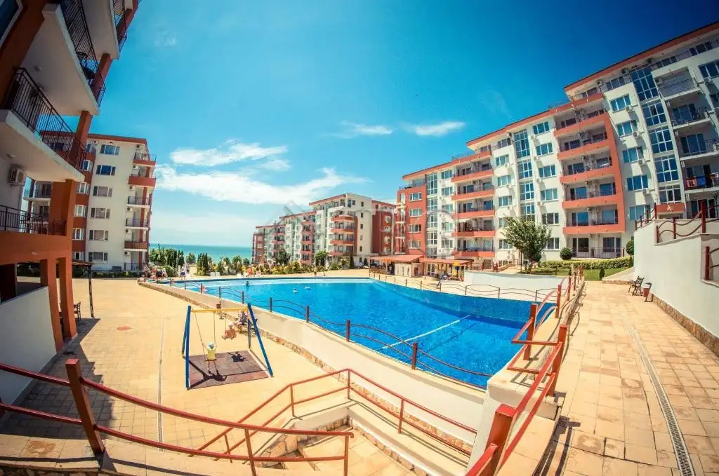 for sale 1-bedroom apartment, located in the beachfront complex Panorama Fort Beach, part of the well-known Fort Noks Grand Resort between Sveti Vlas and Elenite.