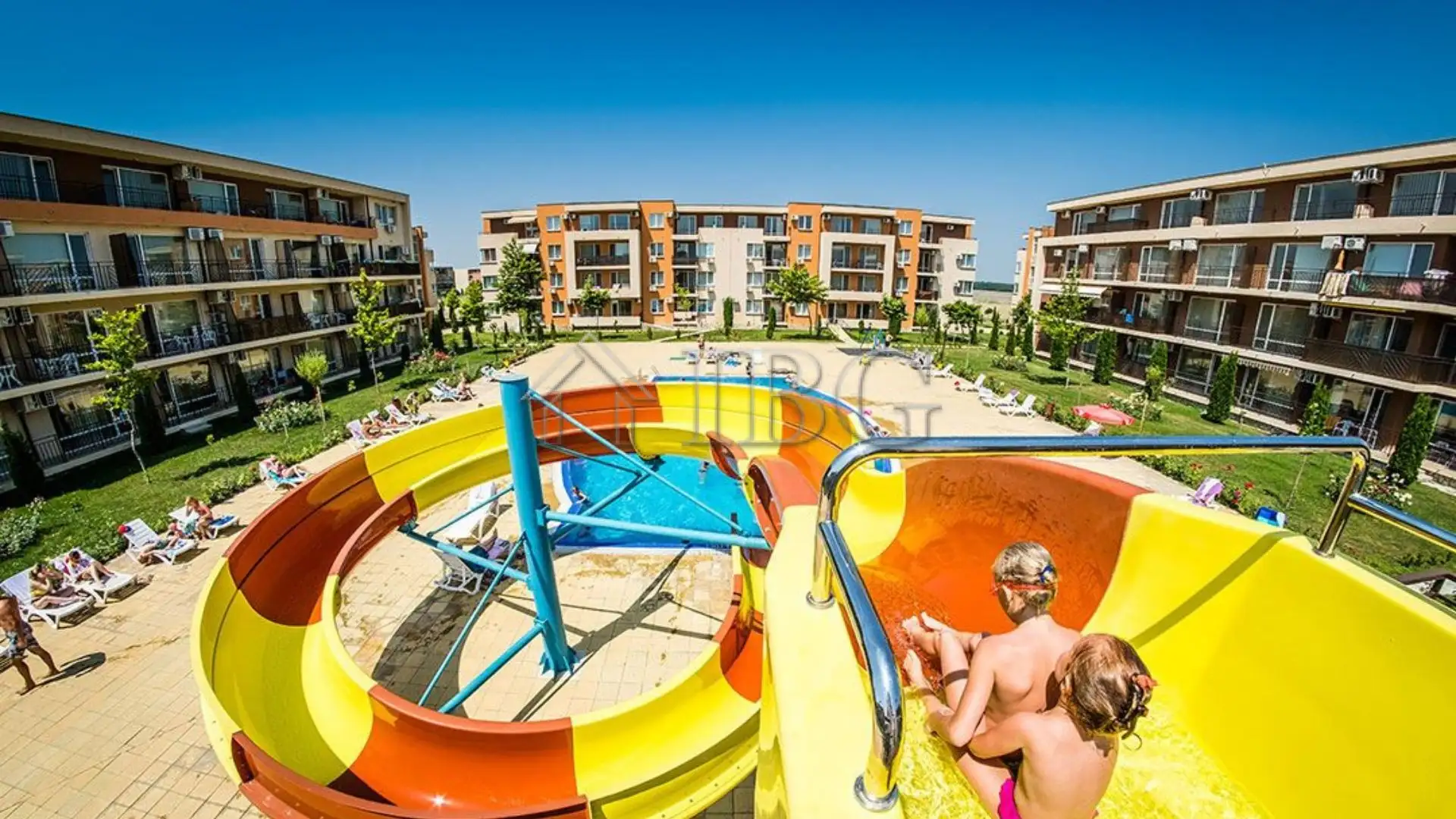 2-bedroom apartment, located on the 2nd floor in the Holiday Fort Club complex in Sunny Beach. This well-maintained, year-round complex is opposite the Action Aqua Park and offers a wide range of amenities, making it ideal for permanent living, holiday use, or rental investment. The beach is only a 10-12 minute walk, and the center of Sunny Beach is about 15 minutes away.