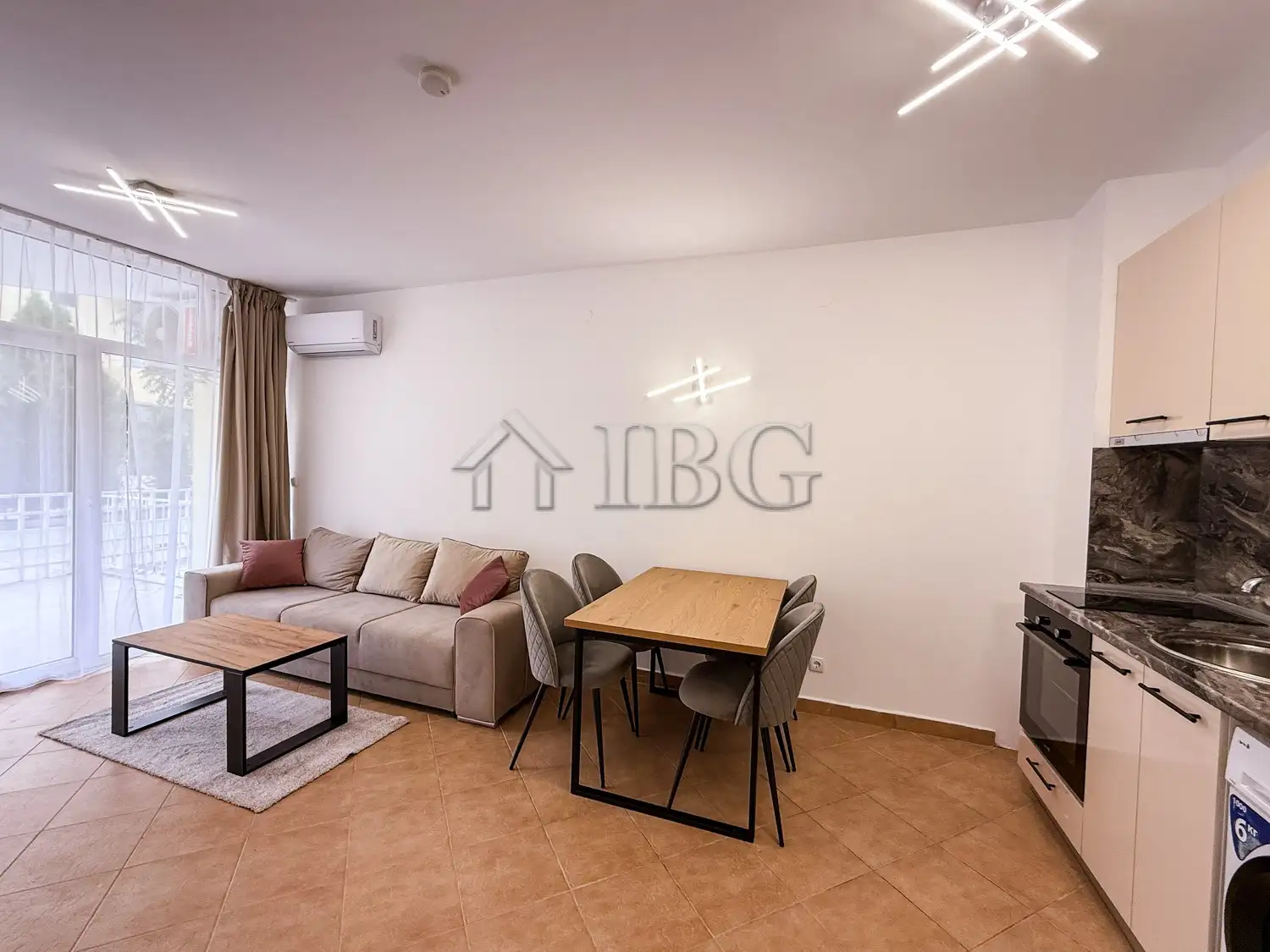 IBG Real Estates offers for sale this stylishly renovated one-bedroom apartment, located on the first floor of the Barco Del Sol complex, in the very heart of Sunny Beach. A dedicated parking space is located within the complex, conveniently positioned directly in front of the apartment’s balcony. The space is prepaid through the end of 2026, with the option to extend if desired. Parking rates are 308 EUR per year (12 months) or 205 EUR for the summer season (May to September).