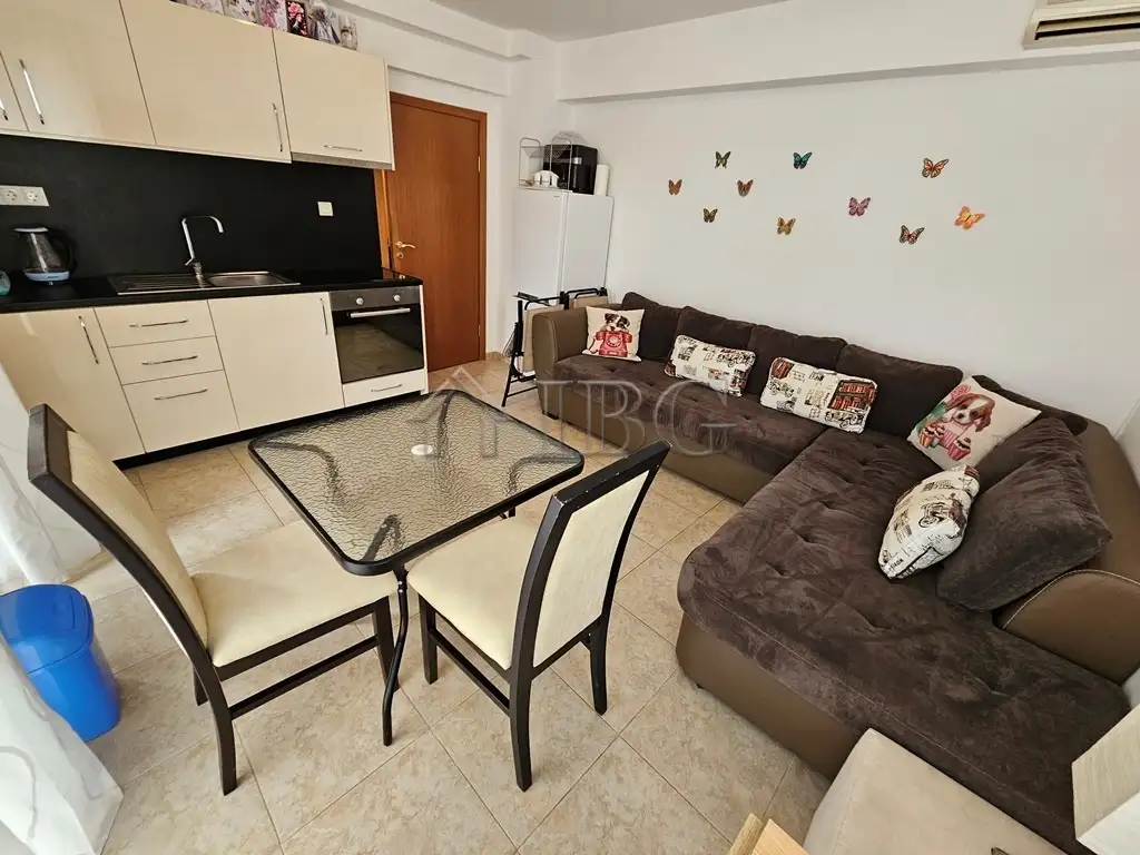 For sale is this one-bedroom apartment located on the 2nd floor /with lift/ in complex Compass in Sveti Vlas. The complex is located just 350 m away from Marina Dinevi – as well as from the magnificent beaches of Venid Beach – rated with a Blue Flag. The complex offers a swimming pool, security and video surveillance. The complex is on a short walking distance from various shops, bus stop, bakery, the beach and of course the popular yacht Port with all its shops, restaurants and entertainment.