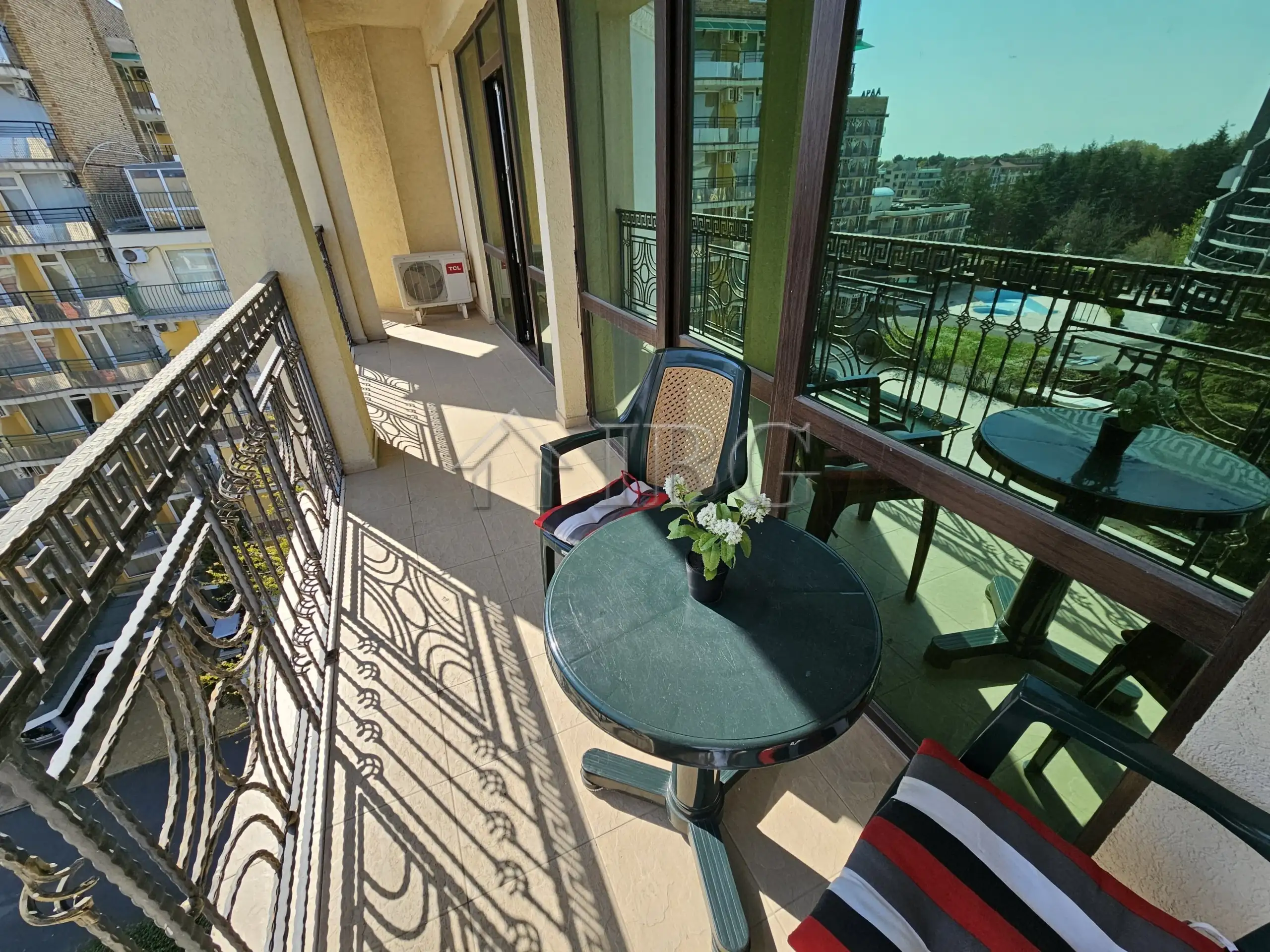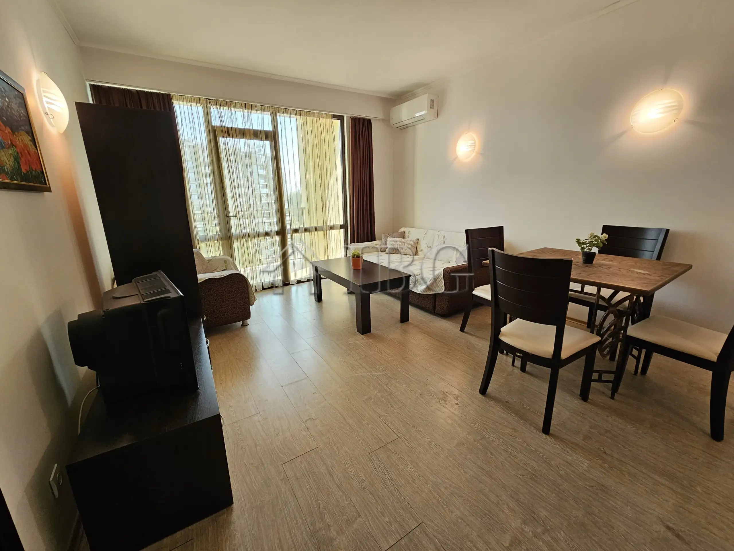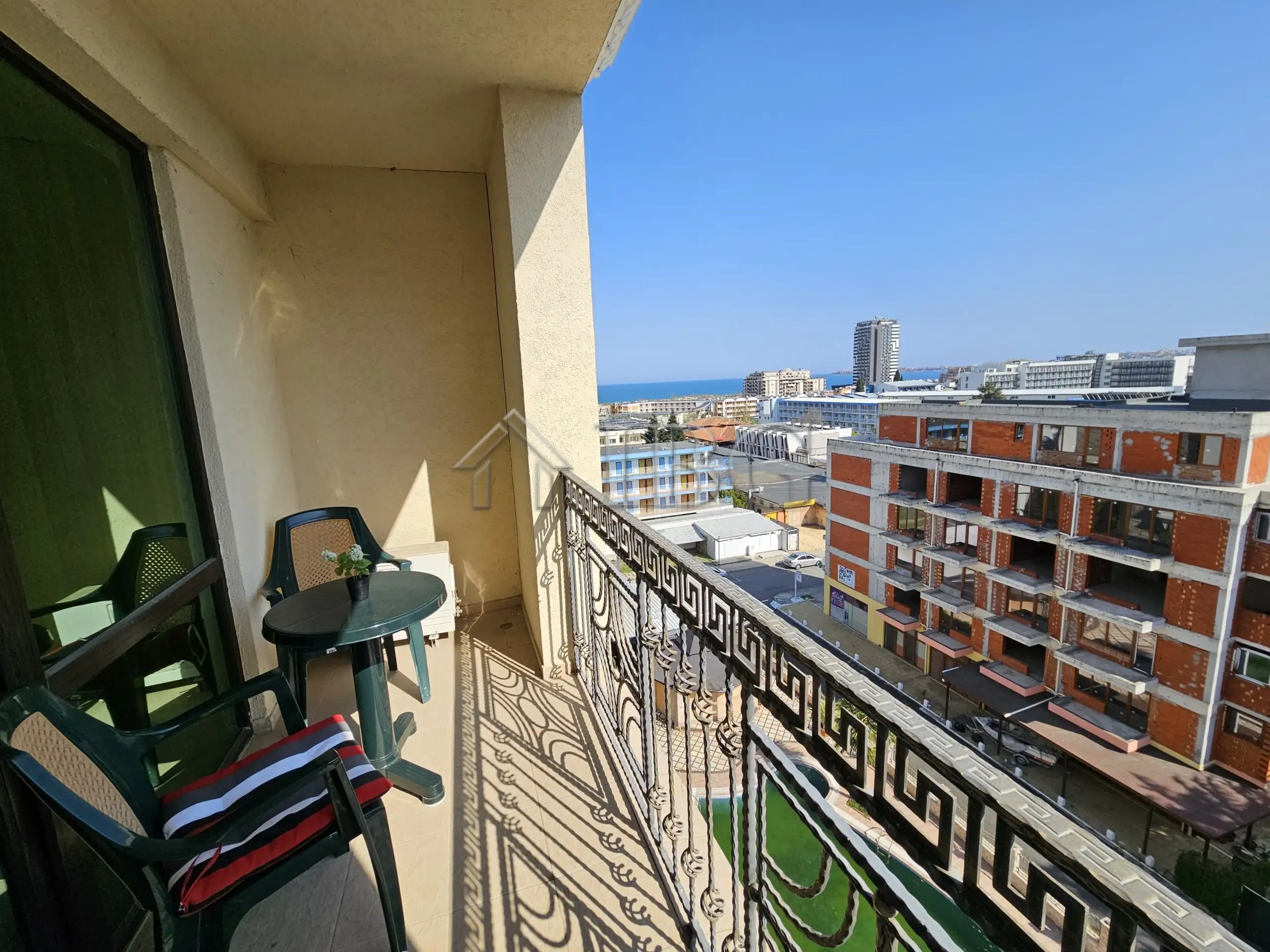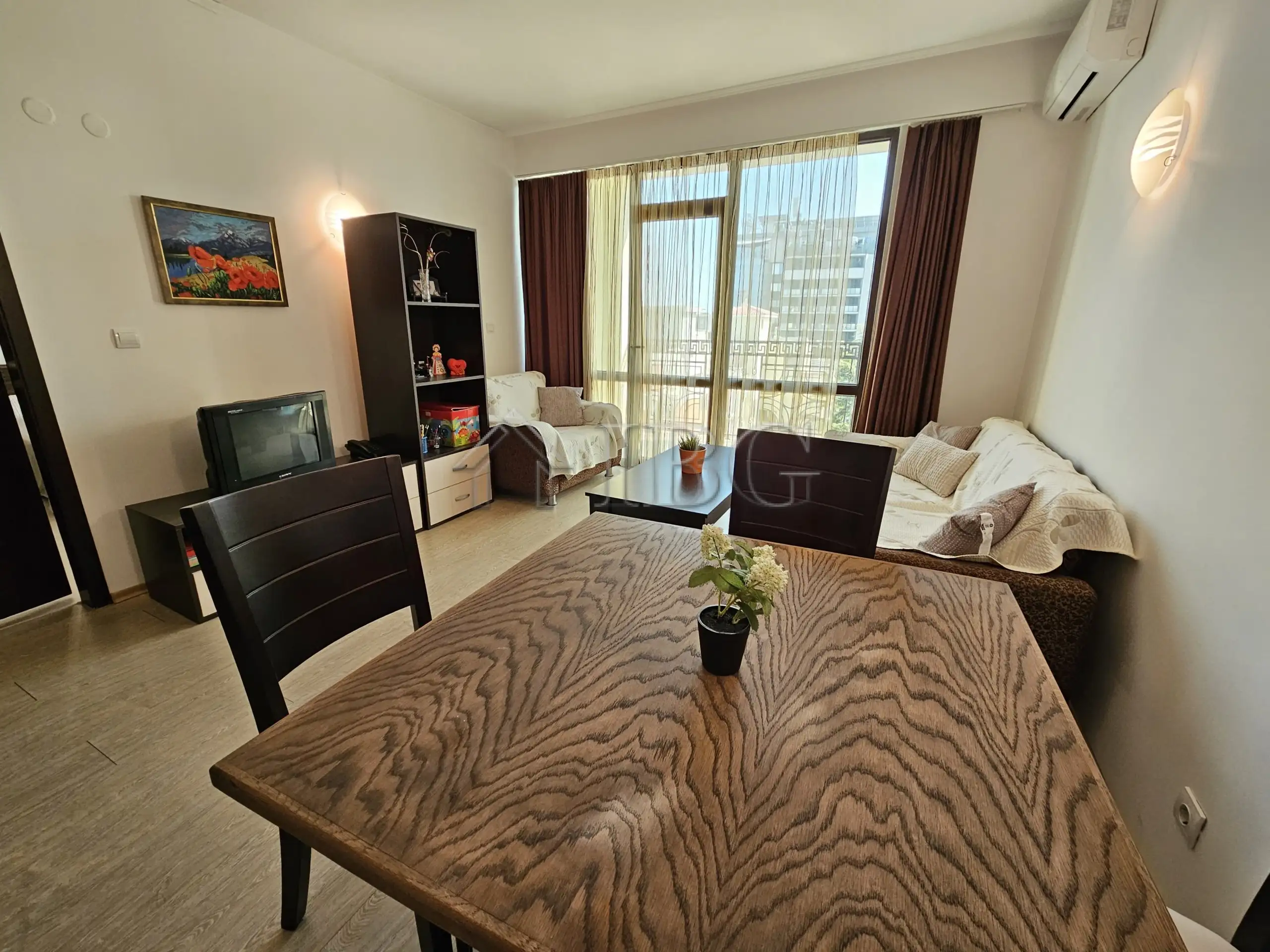 spacious 1-bedroom apartment located on the 7th floor in complex Babylon, only 300 meters from the beach in Sunny Beach. The complex is on the 3rd line from the sea and offers excellent amenities – swimming pool, restaurant, lift, controlled access, and a convenient location near the beach, shops, and the resort center.