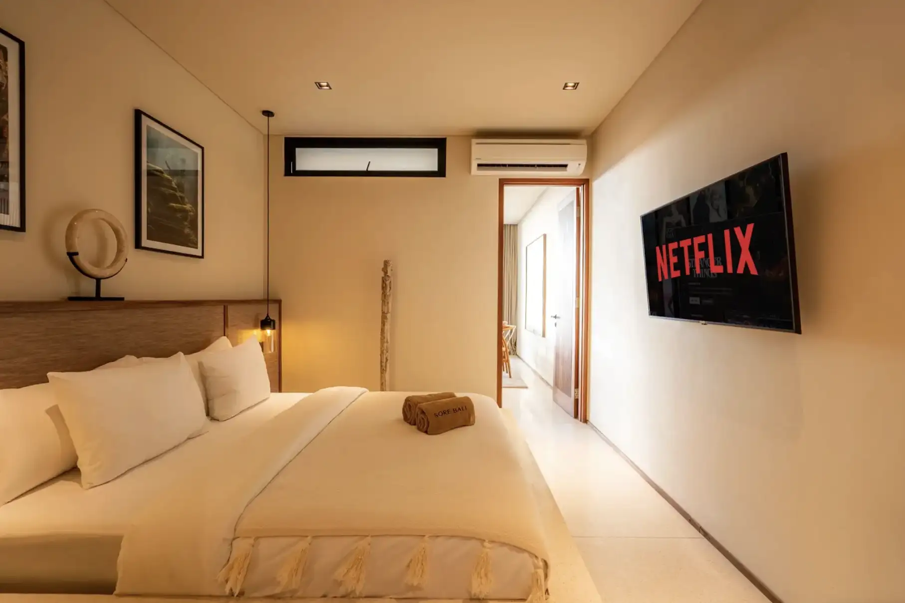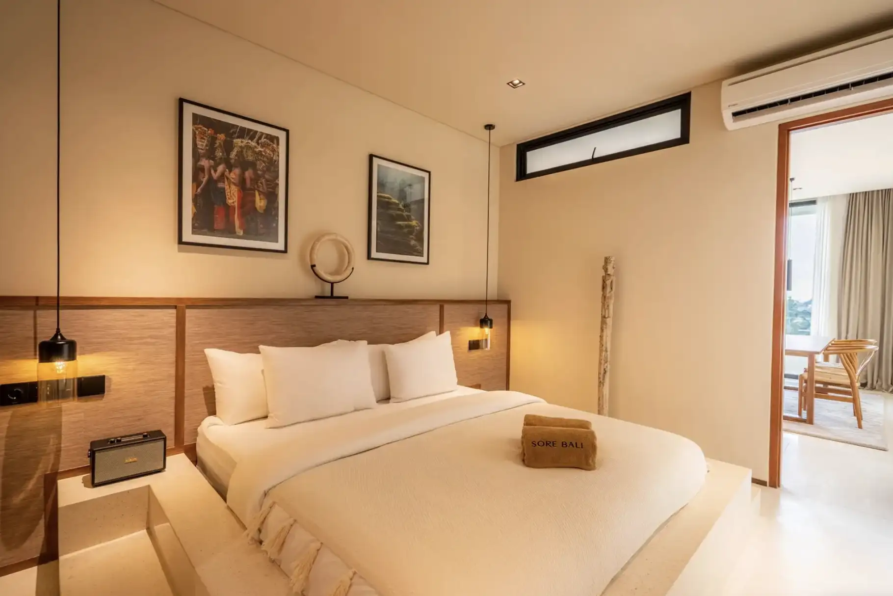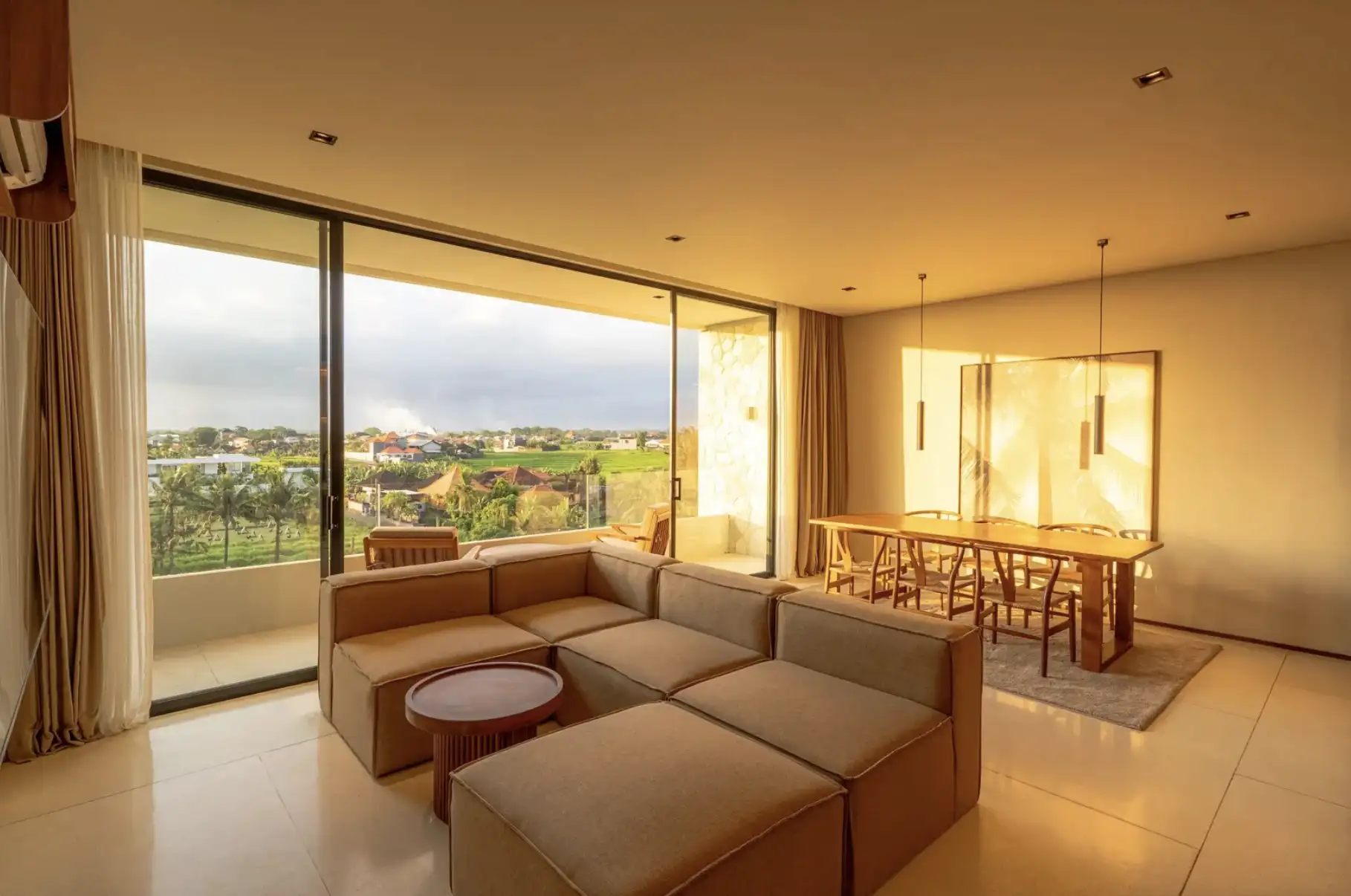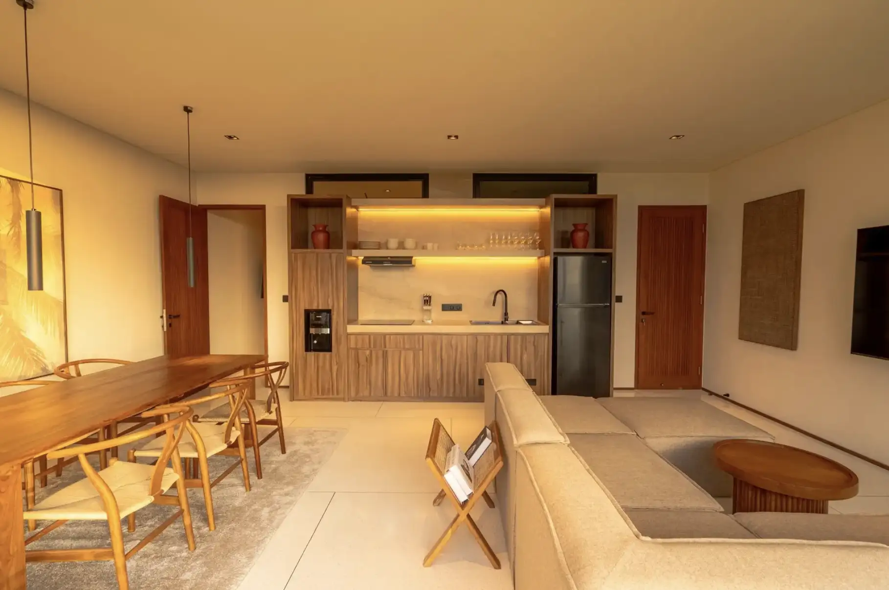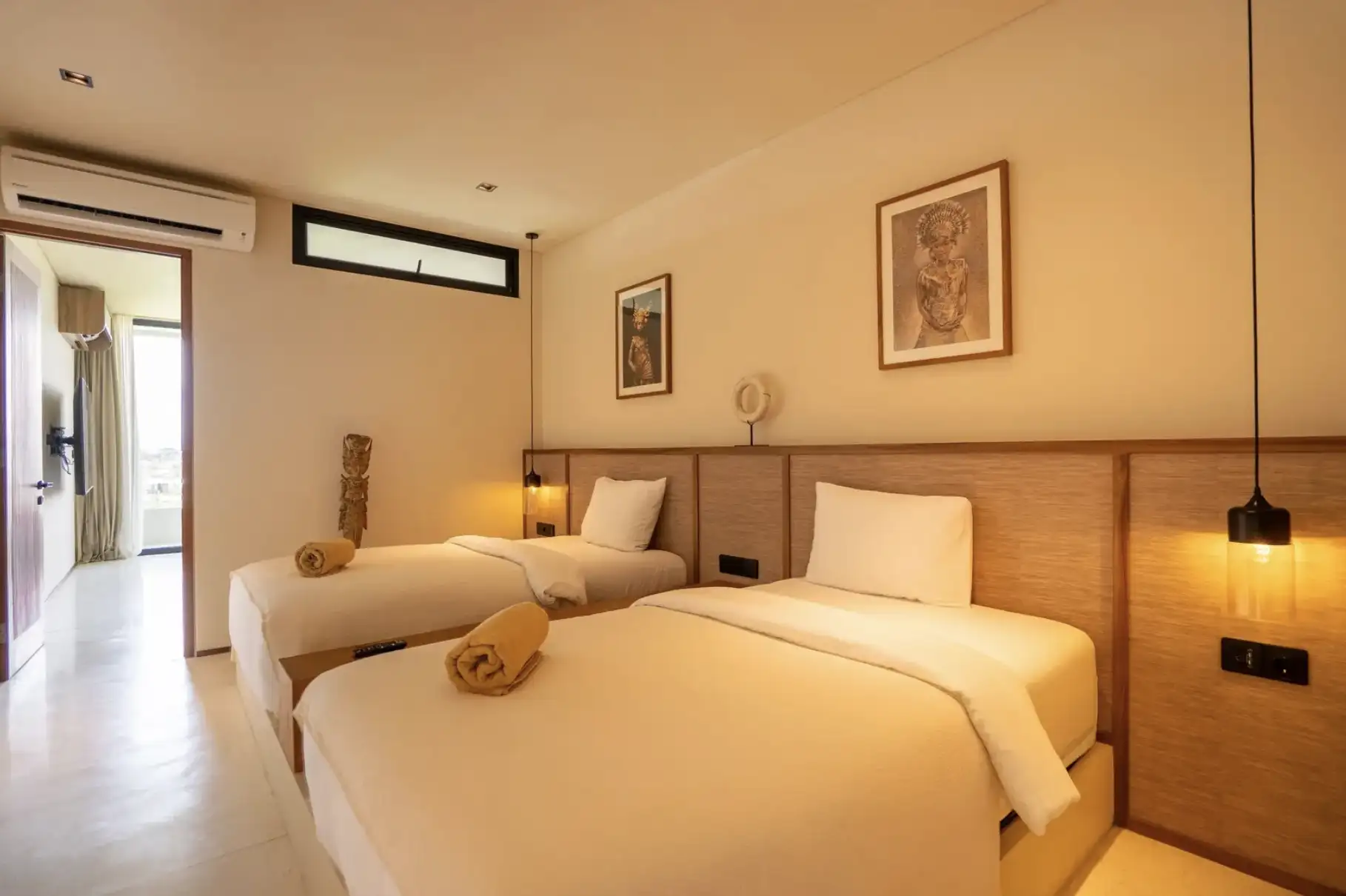 Experience the perfect blend of luxury and convenience in our two-bedroom apartments in Tumbak Bayuh, Bali. Each unit features a master bedroom with a king-size bed and an additional bedroom with two single beds, both with en-suite bathrooms. The modern kitchen, dining space for four, and a cozy lounge area with a sofa and TV create a welcoming atmosphere for relaxation and entertainment. Step onto your private terrace to enjoy excellent sun conditions and stunning sunsets, making each day a memorable experience.