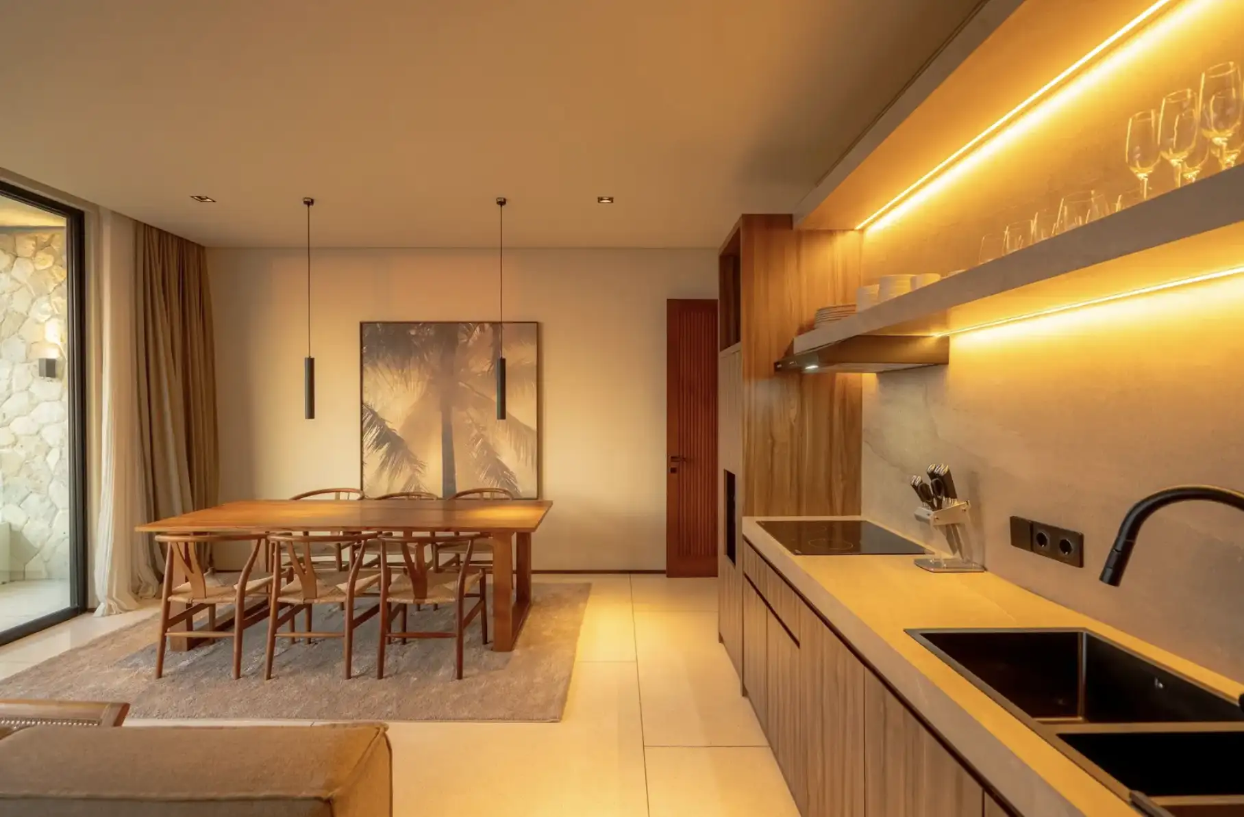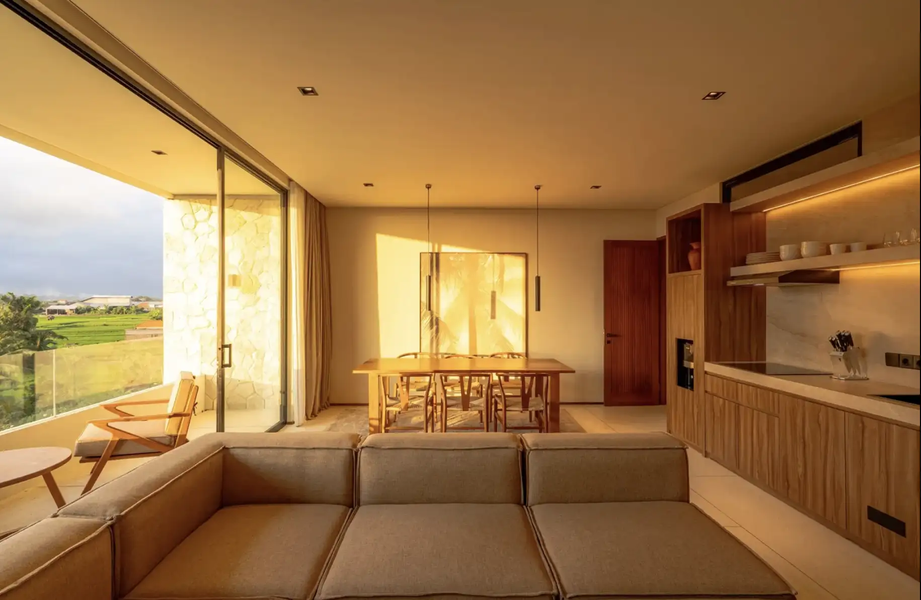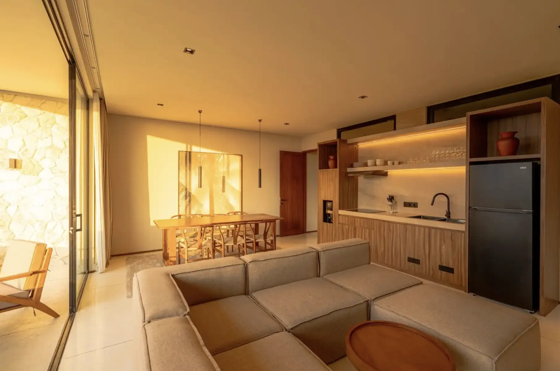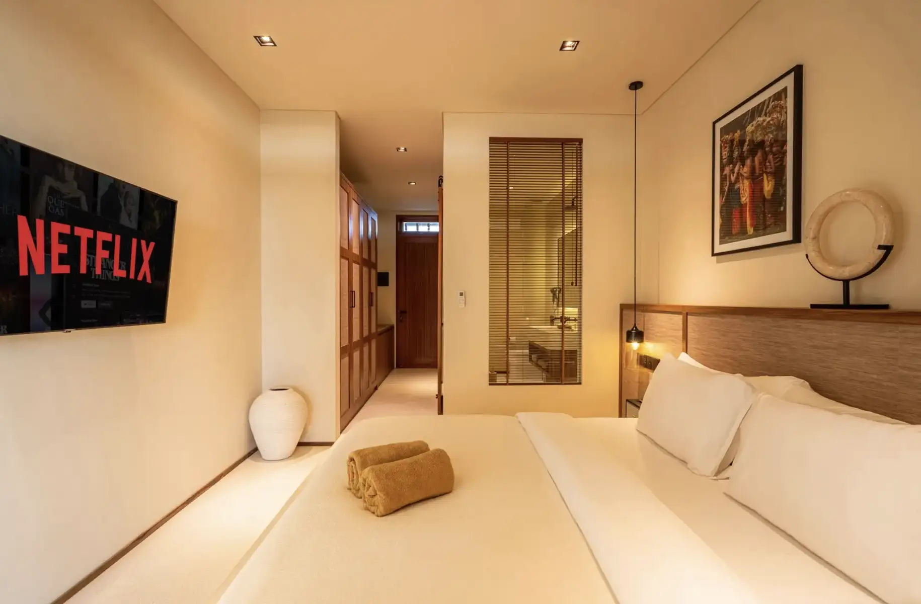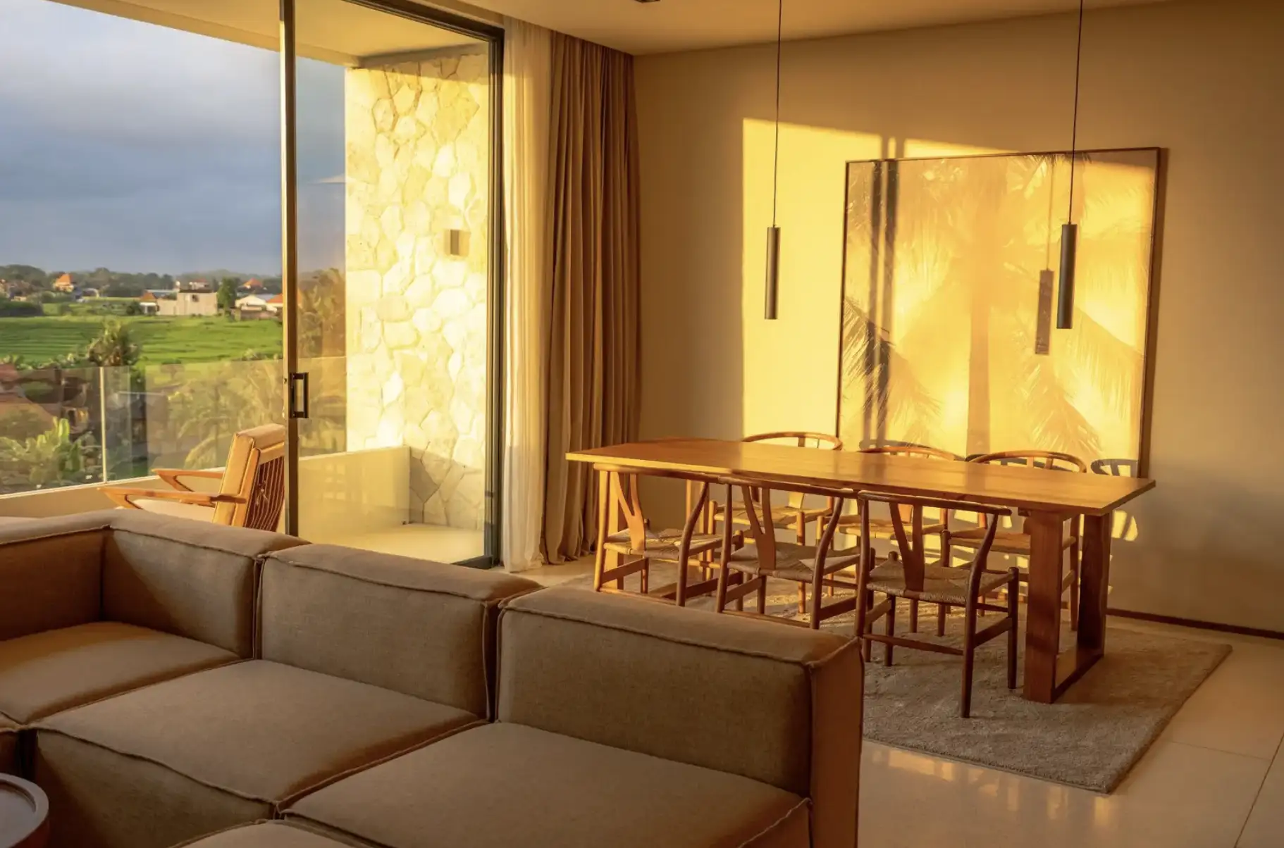 Experience the perfect blend of luxury and convenience in our two-bedroom apartments in Tumbak Bayuh, Bali. Each unit features a master bedroom with a king-size bed and an additional bedroom with two single beds, both with en-suite bathrooms. The modern kitchen, dining space for four, and a cozy lounge area with a sofa and TV create a welcoming atmosphere for relaxation and entertainment. Step onto your private terrace to enjoy excellent sun conditions and stunning sunsets, making each day a memorable experience.