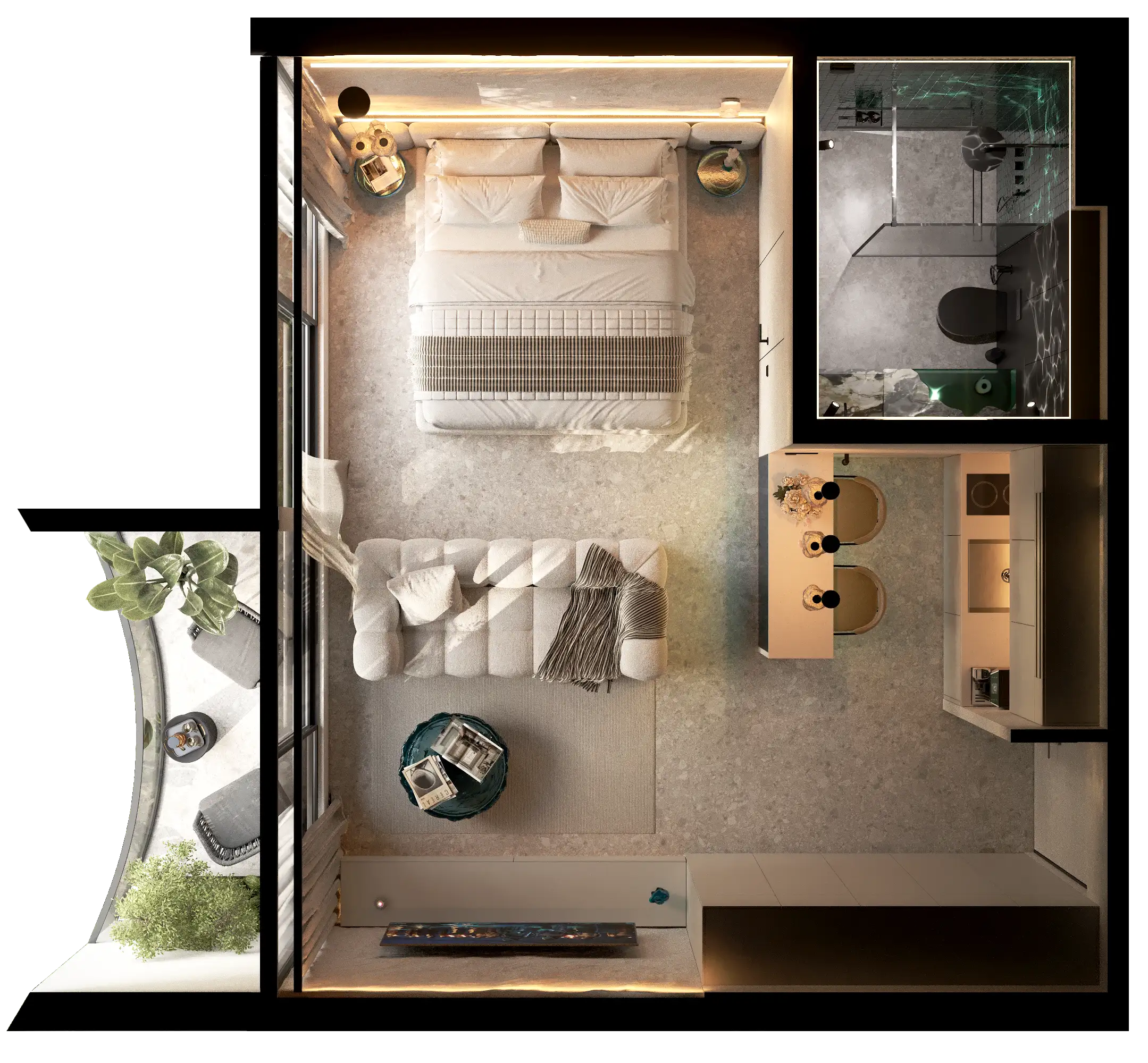 This 30 sqm one-bedroom apartment is designed as a smart, efficient asset within a fully integrated resort complex. The unit features a comfortable bedroom with bathroom, a functional living area, kitchen and dining space, and comes fully furnished for immediate use. A private balcony opens up to ocean views, giving the apartment a premium feel despite its compact size, while access to a shared pool enhances its appeal for short- and mid-term stays.