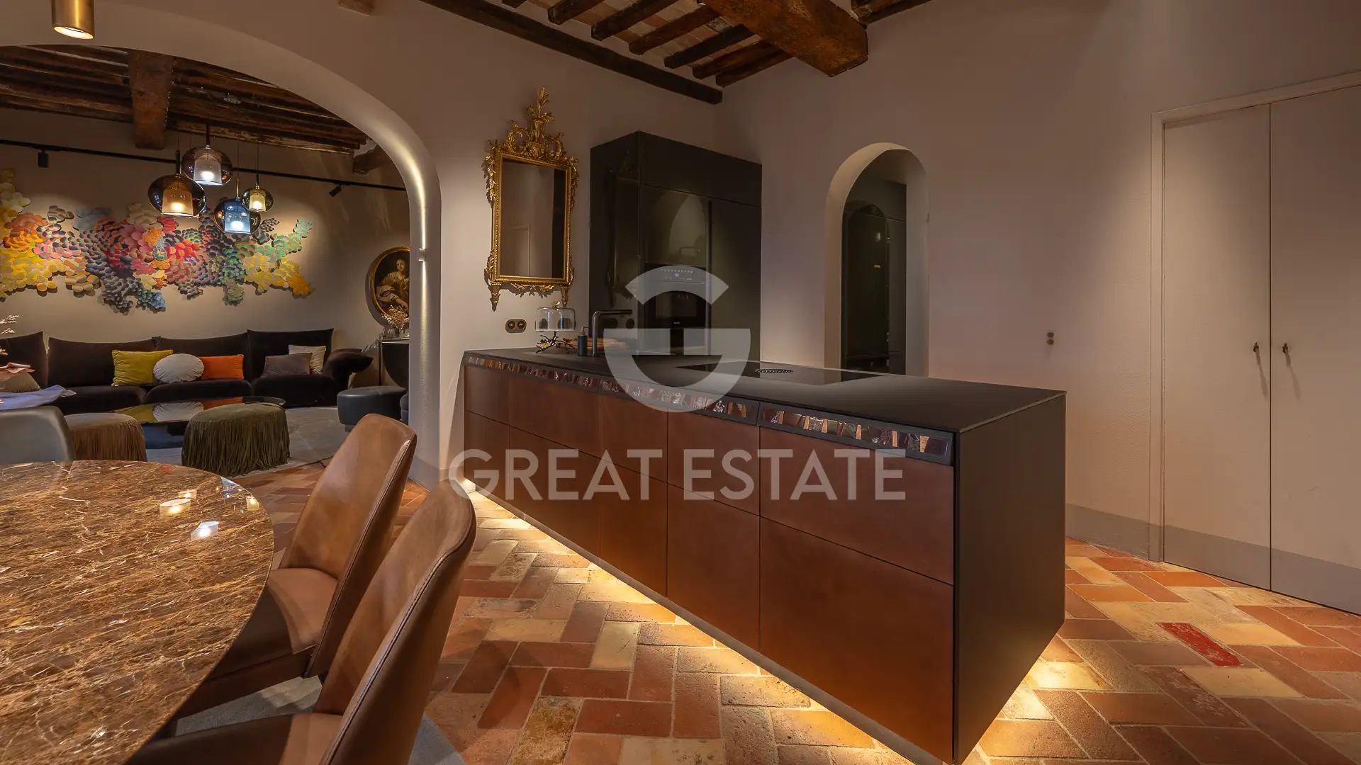 This refined luxury apartment is located just steps from Piazza Grande, in the heart of the Talosa district in Montepulciano. The property enjoys a southeast exposure that offers a stunning view of the hills adorned with the vineyards of Vino Nobile di Montepulciano, while the northwest side overlooks the main street of the historic center.