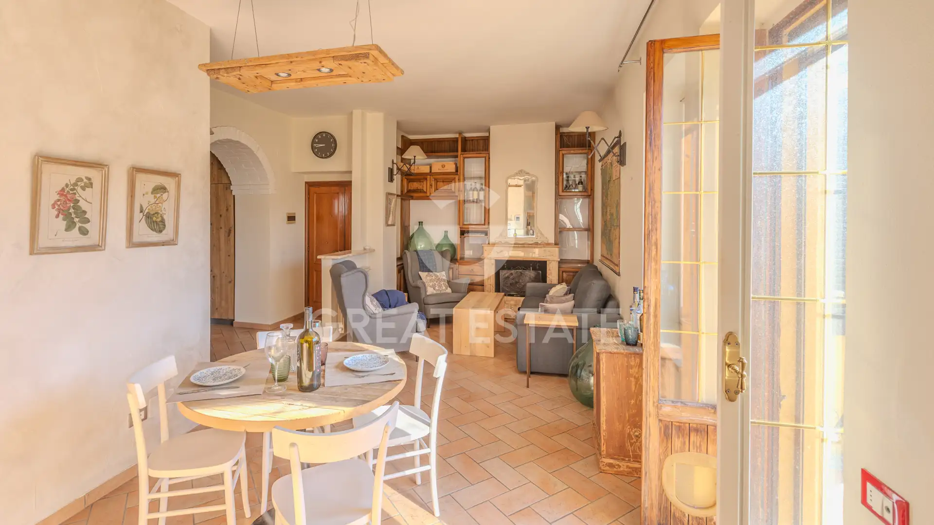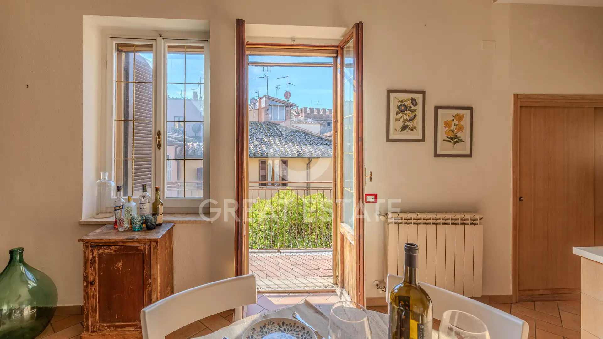 The apartment is located in the historic center of Chiusi and is set on the second floor. The total surface area is approximately 110 sqm and is arranged as follows: the living area measures about 85 sqm and comprises an entrance hall, a living room with a San Casciano marble fireplace in an open-plan layout with the kitchen and dining area, with access to a small terrace. There is a spacious bathroom with bathtub and double washbasin, a master bedroom, and a hallway fitted out as a study. From here, an internal staircase leads to the upper attic level, where there is a versatile multipurpose room and a bathroom with shower. On the same level, there is an attic storage area of approximately 25 sqm. The property is completed by a cellar of about 7 sqm, ideal for storing firewood for the fireplace during the winter season or for use as general storage. The property is sold fully furnished.