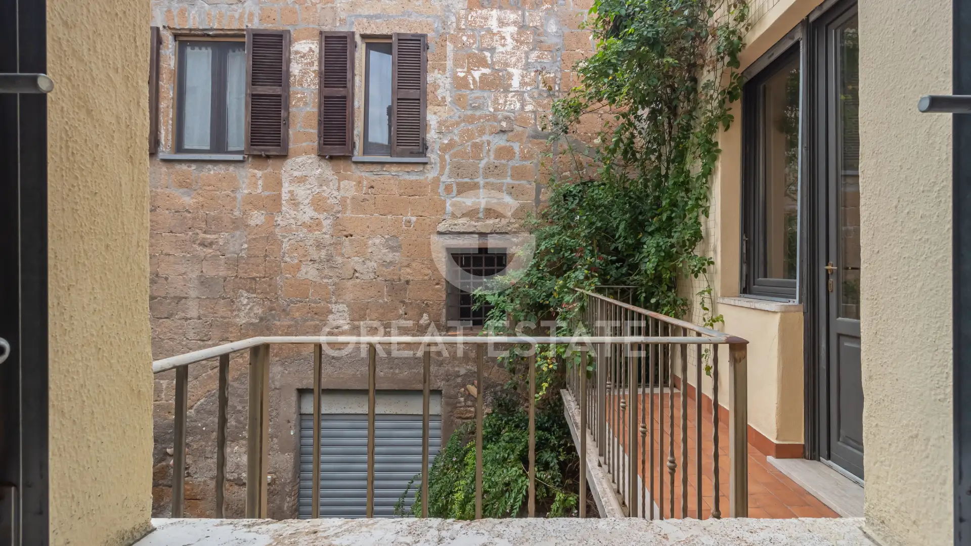 La Casa Gialla offers a range of attractive features in the heart of Orvieto's historic center. It has a separate entrance directly from the shared courtyard on the ground floor, where there is a storage/utility room and a studio apartment with bathroom measuring approximately 70 square meters, equipped with independent utilities. Climbing the stairs to the first floor, we find the main apartment consisting of a hallway (and an additional storage room) onto which many of the rooms open. There is a very spacious kitchen with a wood-burning fireplace, which leads to a shared terrace, then a living room with a balcony, three bedrooms, and two bathrooms. The property is completed by an exclusive courtyard on the north and west sides of the apartment, accessible from one of the bedrooms, as well as an inaccessible attic accessible via a trapdoor with a retractable ladder.