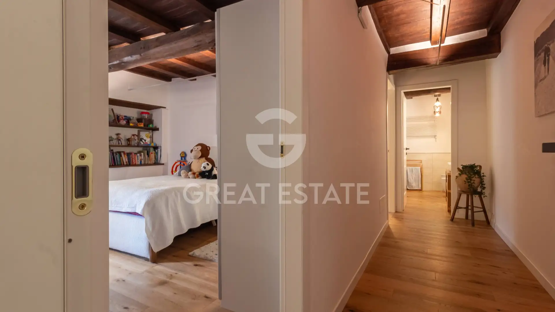 Cozy, refined and meticulously designed in every detail: La Dama is a true gem set in the heart of Orvieto. Carefully renovated, it extends over a net surface area of approximately 94 mq, offering well-proportioned and highly livable spaces. Access is through a shared covered courtyard, followed by just a few steps. Upon entering, you are immediately welcomed into the living area, featuring double exposure. From here, on one side, there is direct access to the eat-in kitchen, the laundry/storage room, and a beautiful windowed bathroom with shower. On the other side of the living room, a spacious hallway leads to two double bedrooms and a windowed bathroom with shower. A rational and highly functional layout that makes every space perfectly enjoyable.