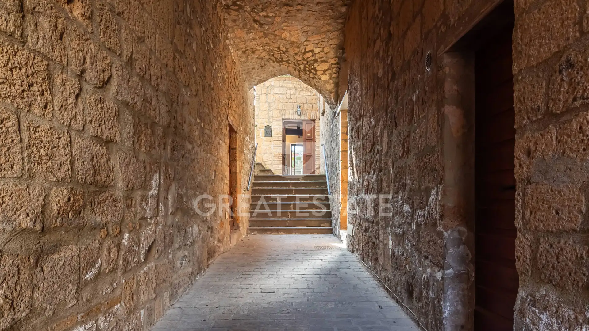 Townhouse White Loggia is located in the heart of the historic center of Orvieto, in an easily accessible position close to parking areas. This charming townhouse shares an entrance with other properties, as well as a delightful courtyard with a well, and then develops independently for a total of 208 square meters. Upon entering, you are immediately welcomed into a characteristic entrance hall, where the old medieval butto, a distinctive feature of the most ancient residences, is preserved. On the same level there is another room, which also includes a small kitchen and serves as a versatile multipurpose space. Just outside the door on this floor, there is a bathroom with shower and a storage room-technical area.