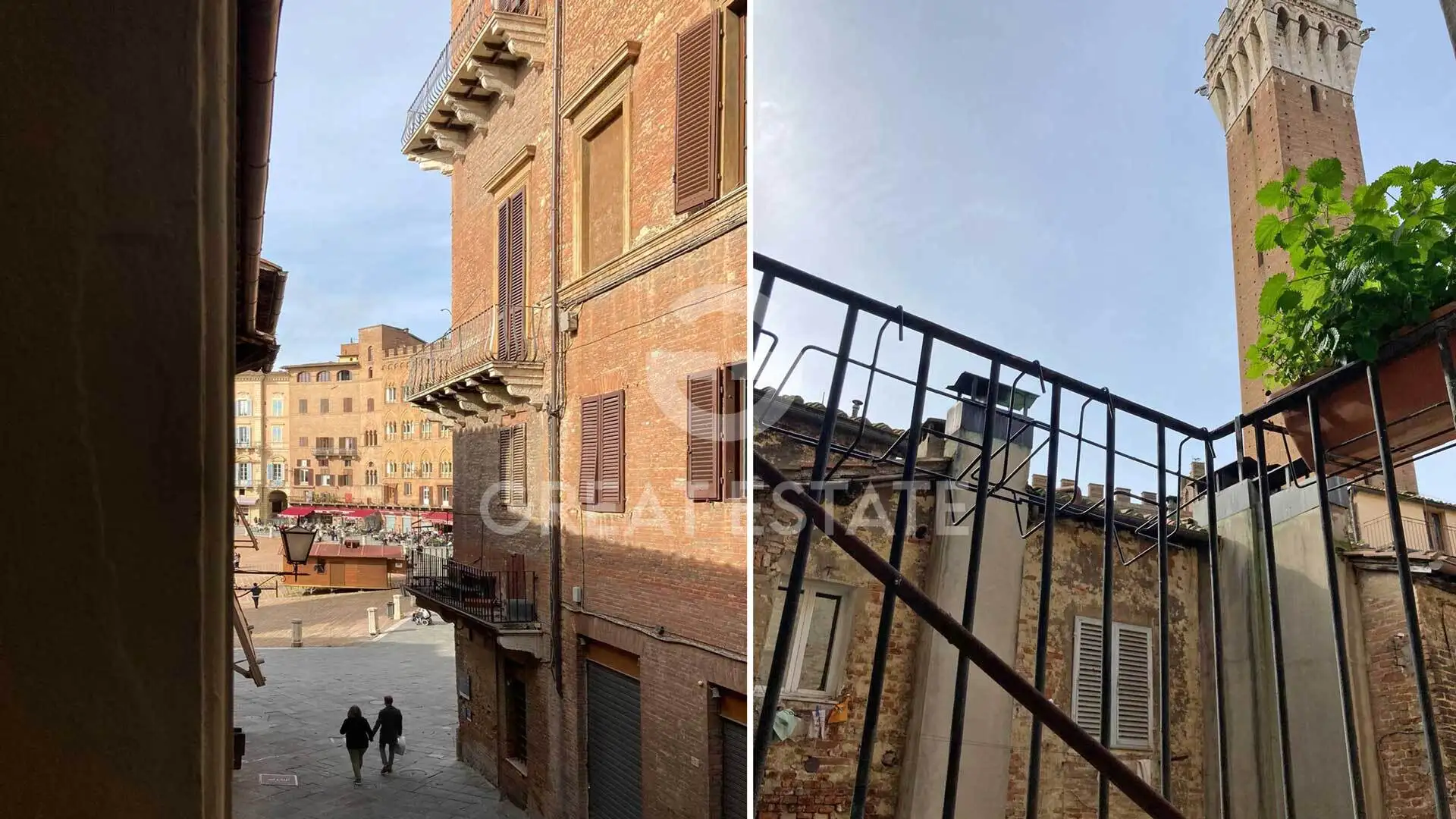 Located on the ground floor of a prestigious historic palazzo, the apartment opens onto a welcoming entrance hall that leads into the living area. To the left, the spacious eat-in kitchen is complemented by a large and functional storage room. Continuing on, the heart of the residence is represented by a majestic reception salon, ideal for elegant entertaining and formal gatherings. The sleeping quarters, private and serene, feature two double bedrooms, one of which includes a dedicated walk-in wardrobe, served by three generously sized and finely appointed bathrooms. An internal staircase discreetly leads to the mezzanine level, currently arranged as a third double bedroom with its own en-suite bathroom. The property is further enhanced by a private balcony with direct views of the Torre del Mangia and a small cellar.