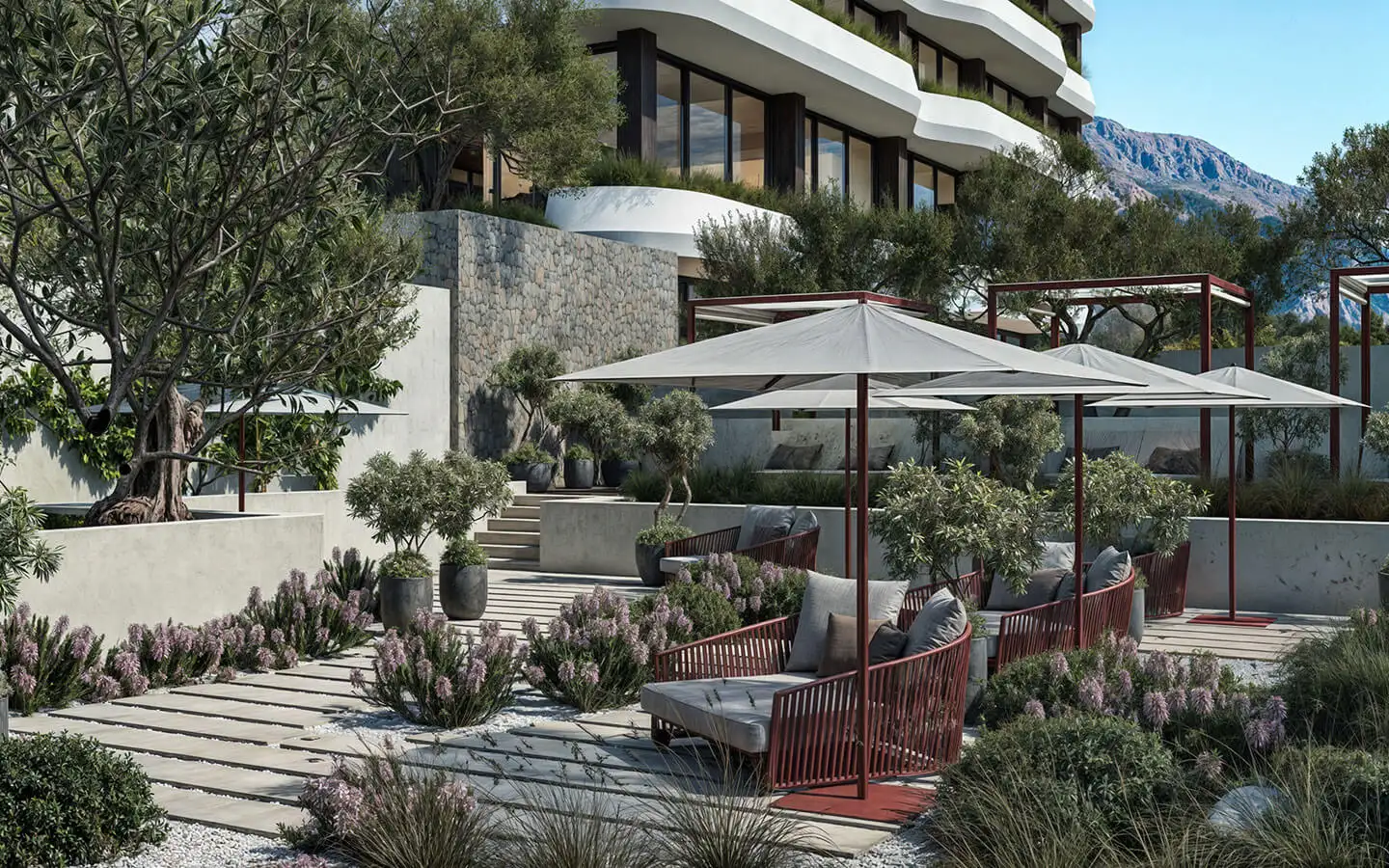 Onia Hills Resort & Residences presents a rare opportunity to own a stylish one-bedroom apartment within a sustainable luxury complex, situated in the lush hills of Reževici, just minutes from the Adriatic coast. With breathtaking panoramic sea views, exceptional architecture, and resort-style amenities, this development is designed for those seeking both tranquility and comfort.